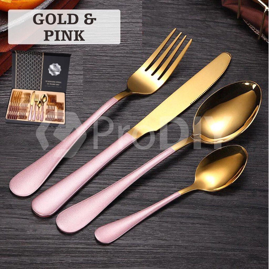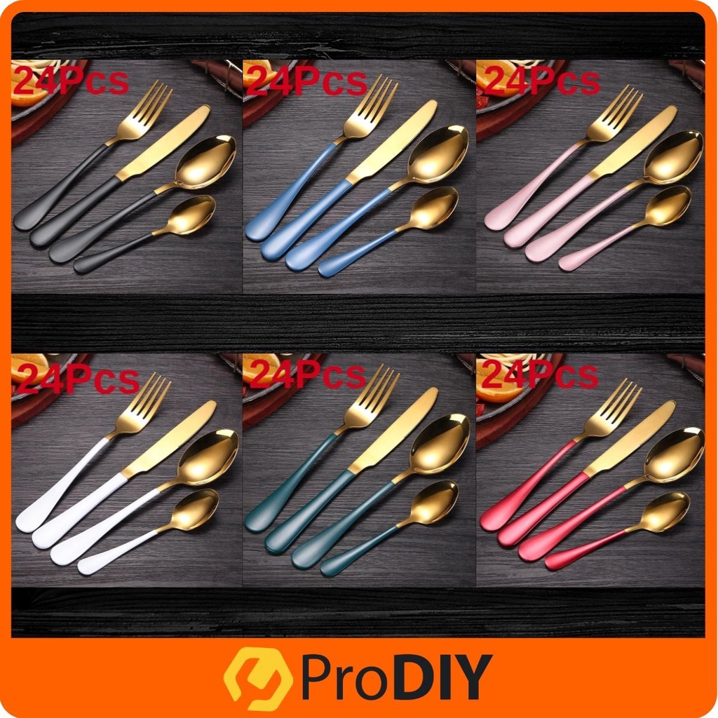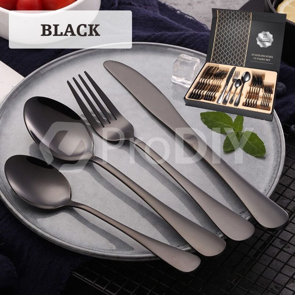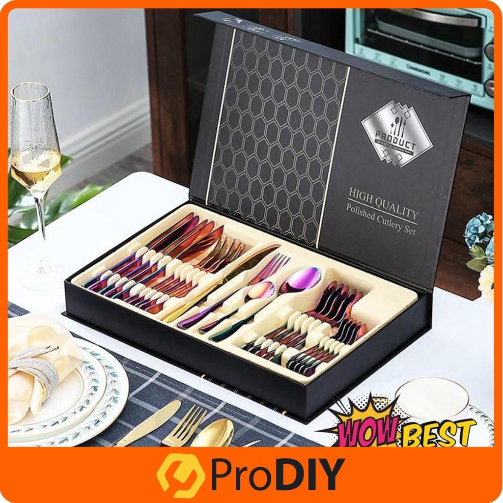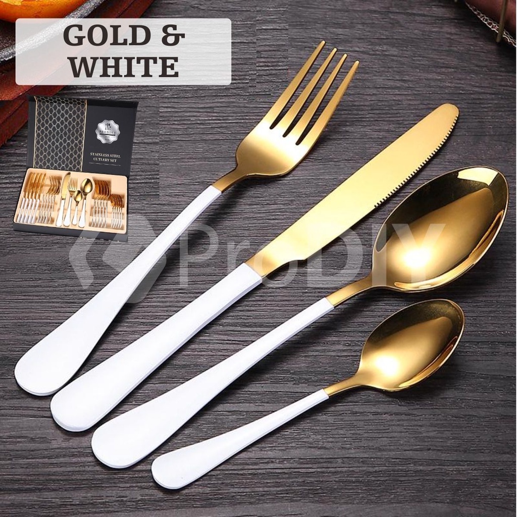 PRODIY 24PCS PREMIUM Stainless Steel Gold Cutlery Set Sudu Garfu Fork Spoon Set Gift'Box Hadiah Kahwin Set Hadiah Kawin