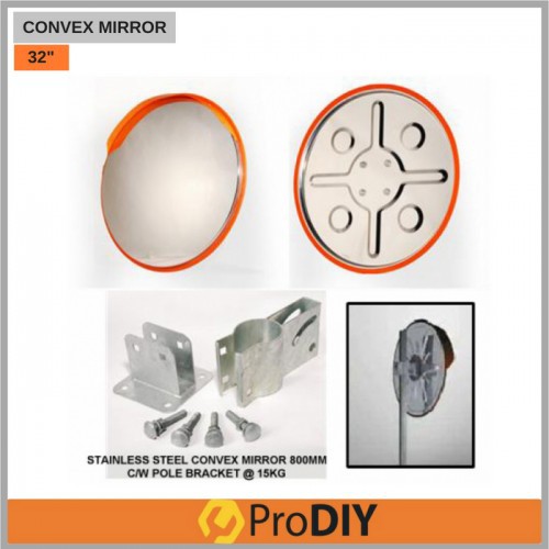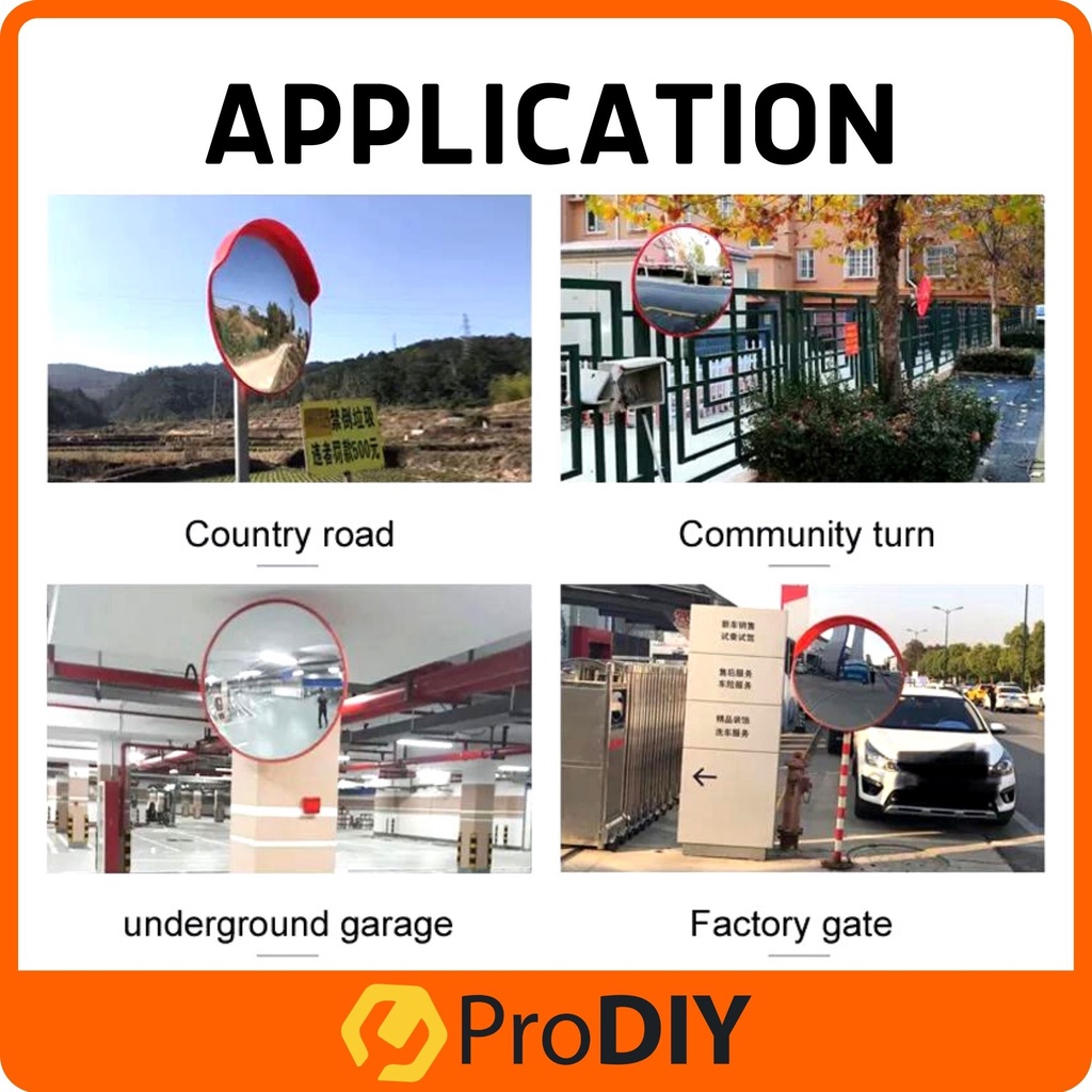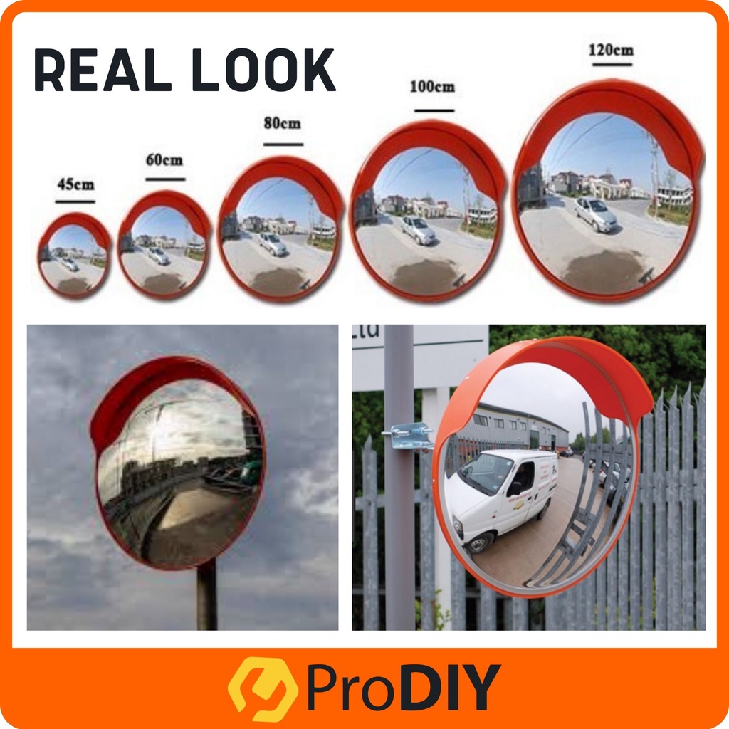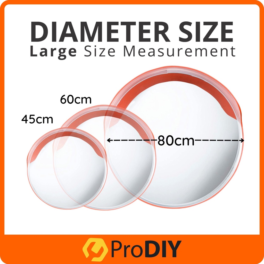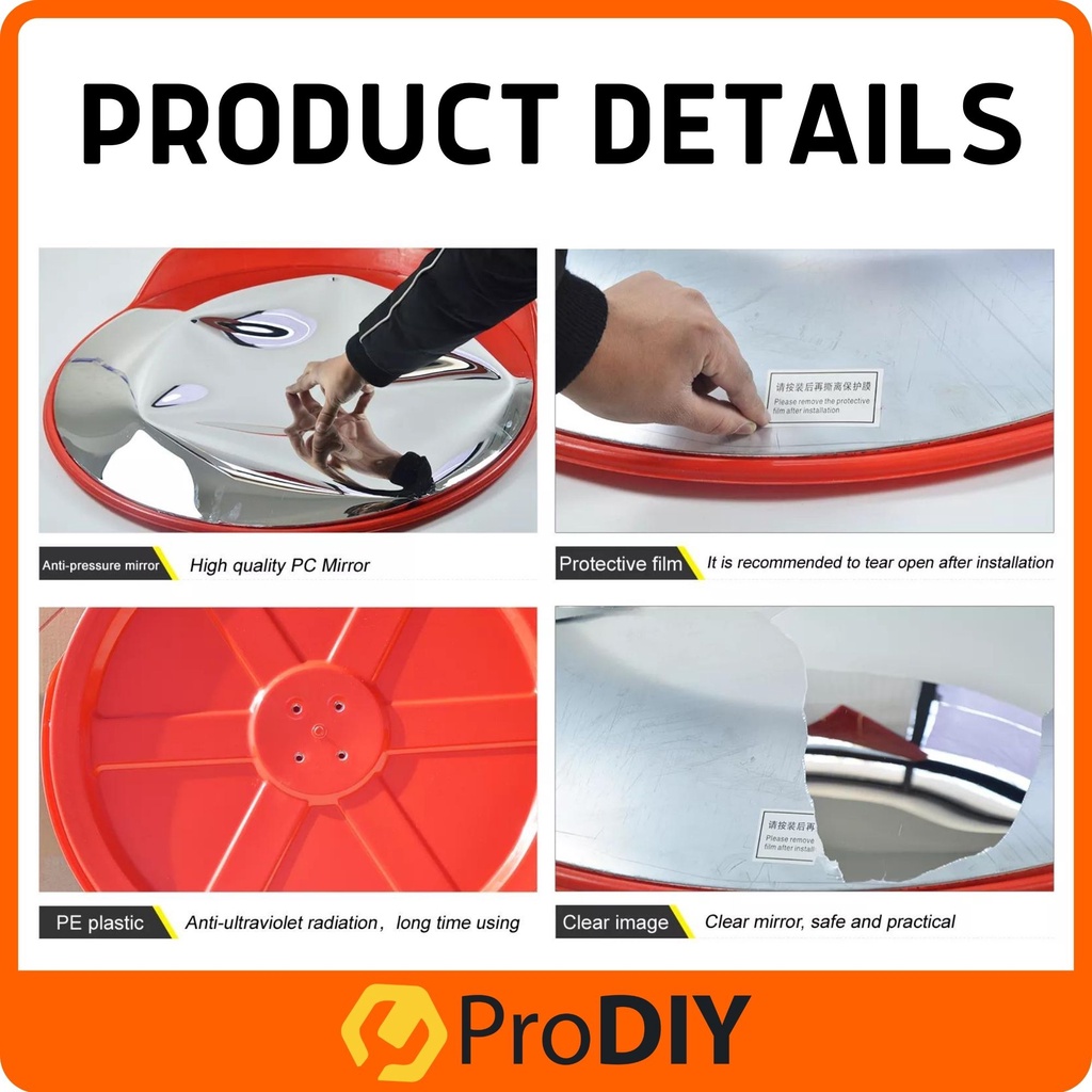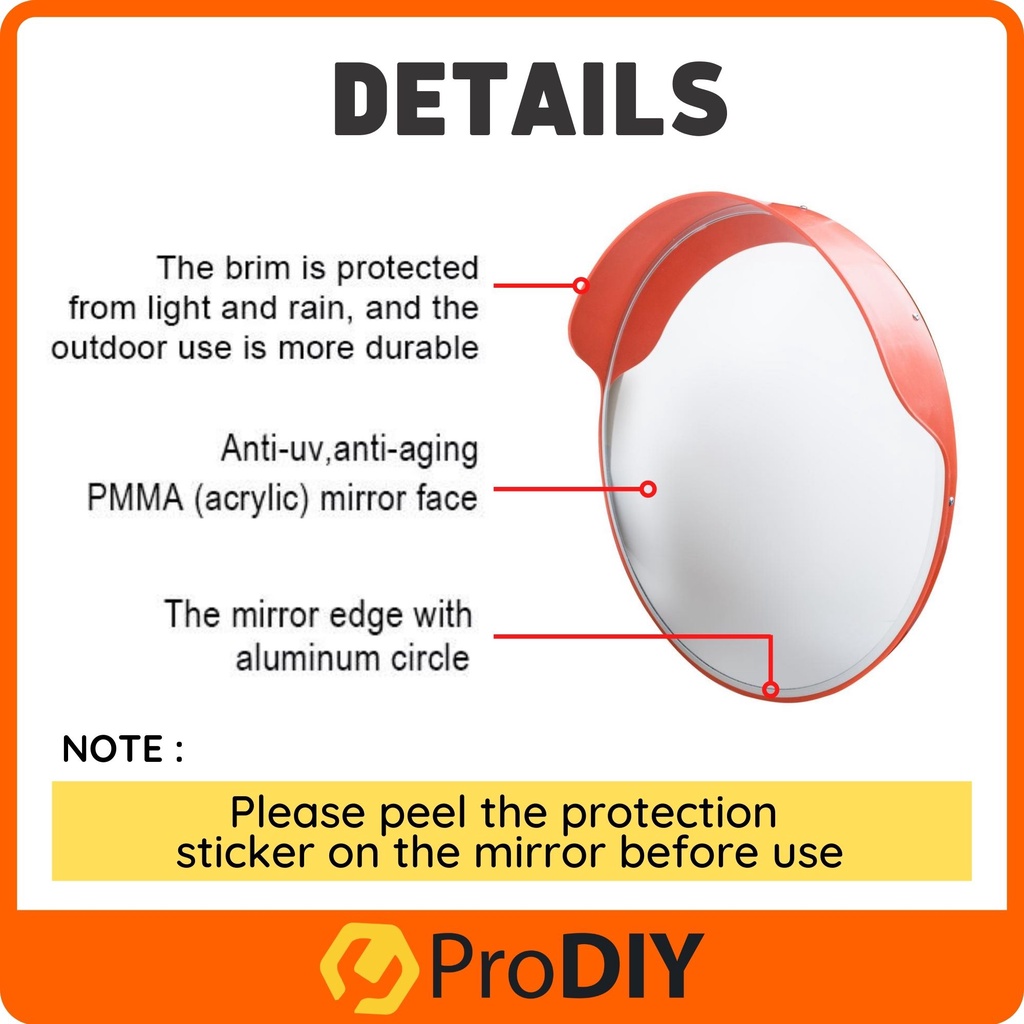 PRODIY 32" Convex Mirror Outdoor Convex Mirror 80CM 32 inch Traffic Mirror Corner Mirror PC Plastic Orange Polycarbonate
