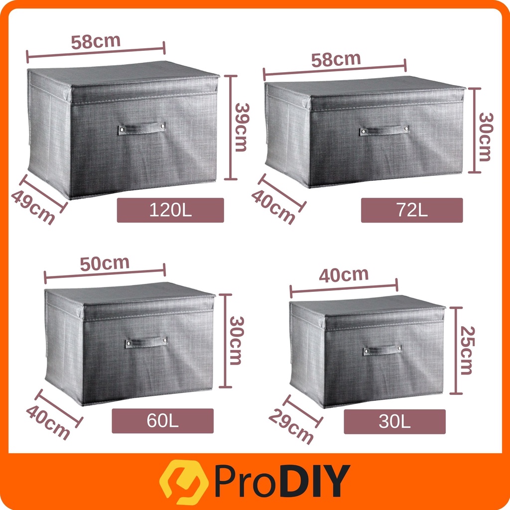 PRODY 30 60 72 120 Liter Fabric Foldable Storage Box Large Wardrobe Organizer Cloth Storage Baju Kotak simpan Barang