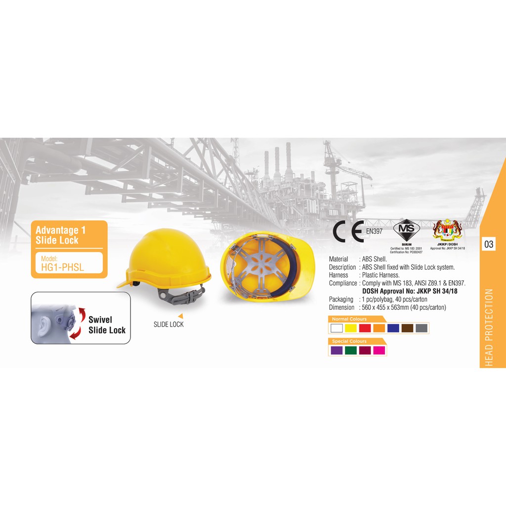 PROGUARD ADVANTAGE 1 WHRS | Topi keselamatan|Safety Helmet | SIRIM & DOSH Approval