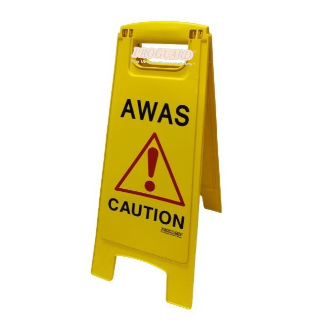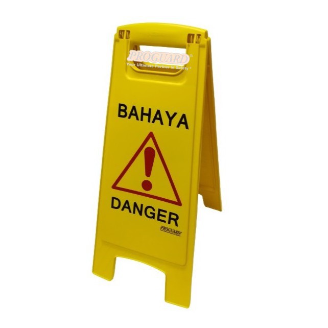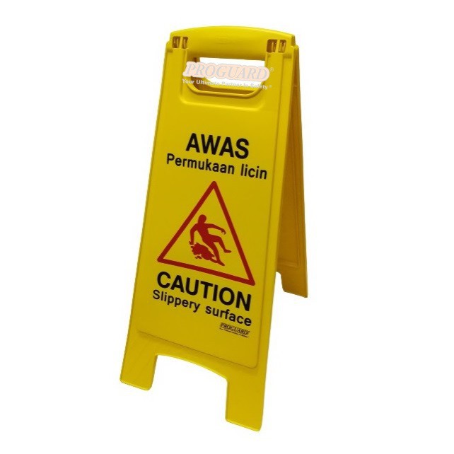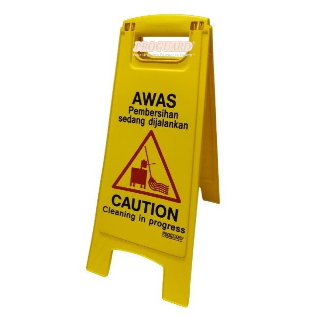 PROGUARD | FOLDED HAZARD WARNING SAFETY FLOOR SIGN PAPAN BAHAYA/CAUTION PERMUKAAN LICIN/WET FLOOR CLEANING IN PROGRESS