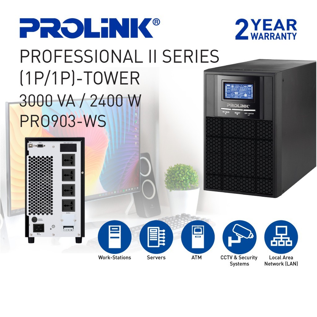 PROLiNK 3KVA / 2400W Pure Sine Wave Online UPS with AVR Computer Server Medical Equipment Backup Power PRO903WS