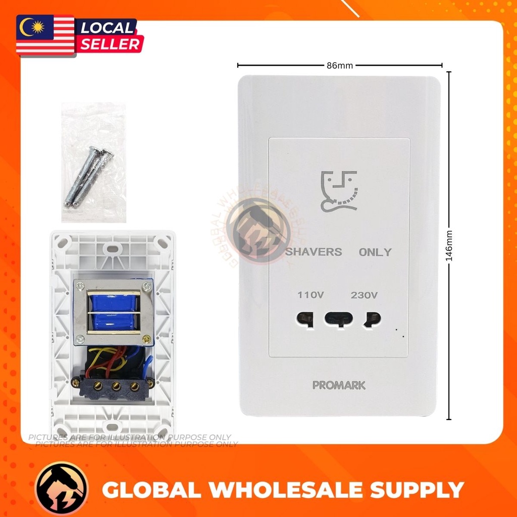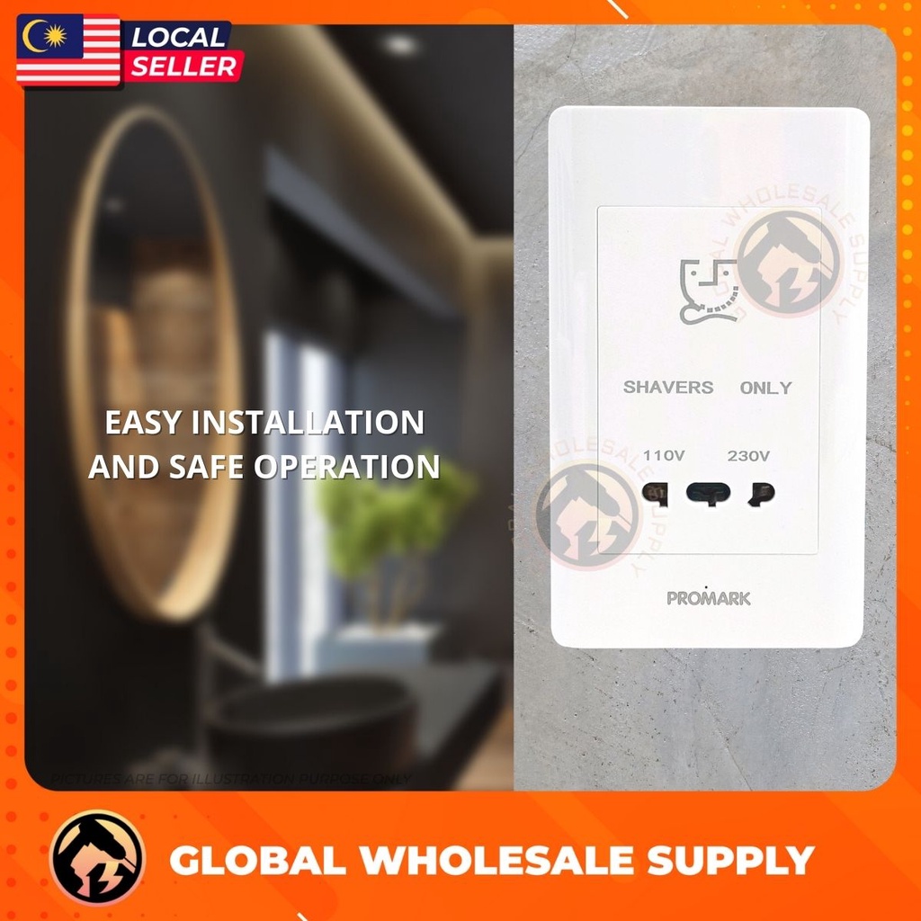 PROMARK Shaver Socket 110V-240V Wall Mounted Type Shaver Socket Power Wall for Hotel Bathroom Shaver Socket Beard Shaver