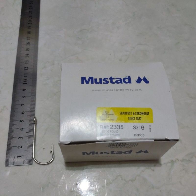 PROMO (10 boxes FOC 1 box)Mata kail Mustad cap kunci 2335 (100pcs) berlubang / fishing hooks / sea hooks