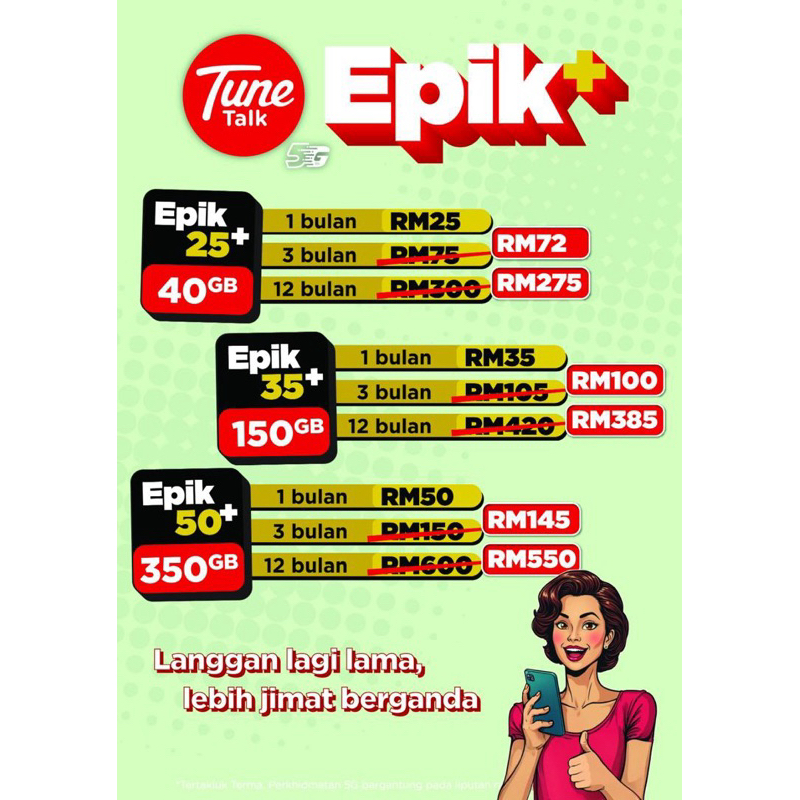 PROMO 10 Sen Tanpa Had Sim Card Tune Talk Prepaid Pek epik 350GB Unlimited Tunetalk High Speed Data