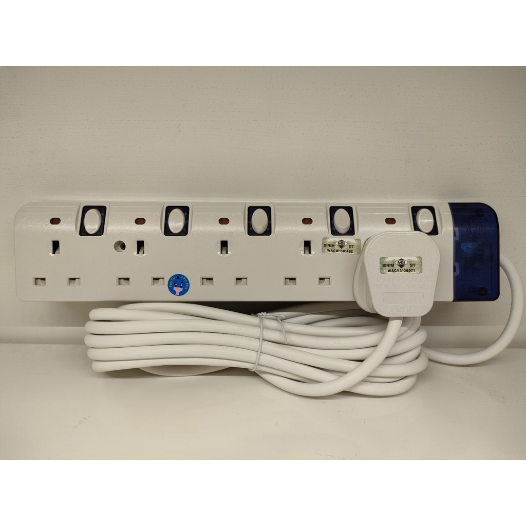 PROSMK 4 GANG/5 GANG EXTENSION SOCKET WITH NEON (5M CABLE). SIRIM APPROVED