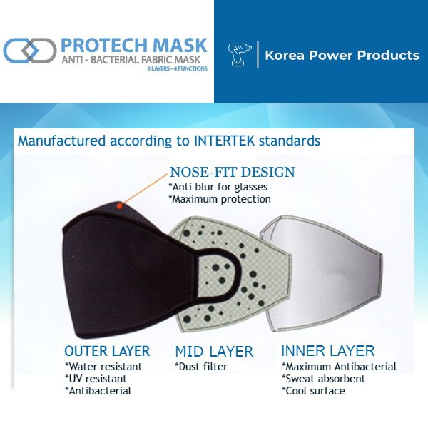 PROTECH Reusable Washable Fabric Cloth Antibacterial Face Mask, Certified 3 Ply / Layers WHO standards [Adult and Kids]