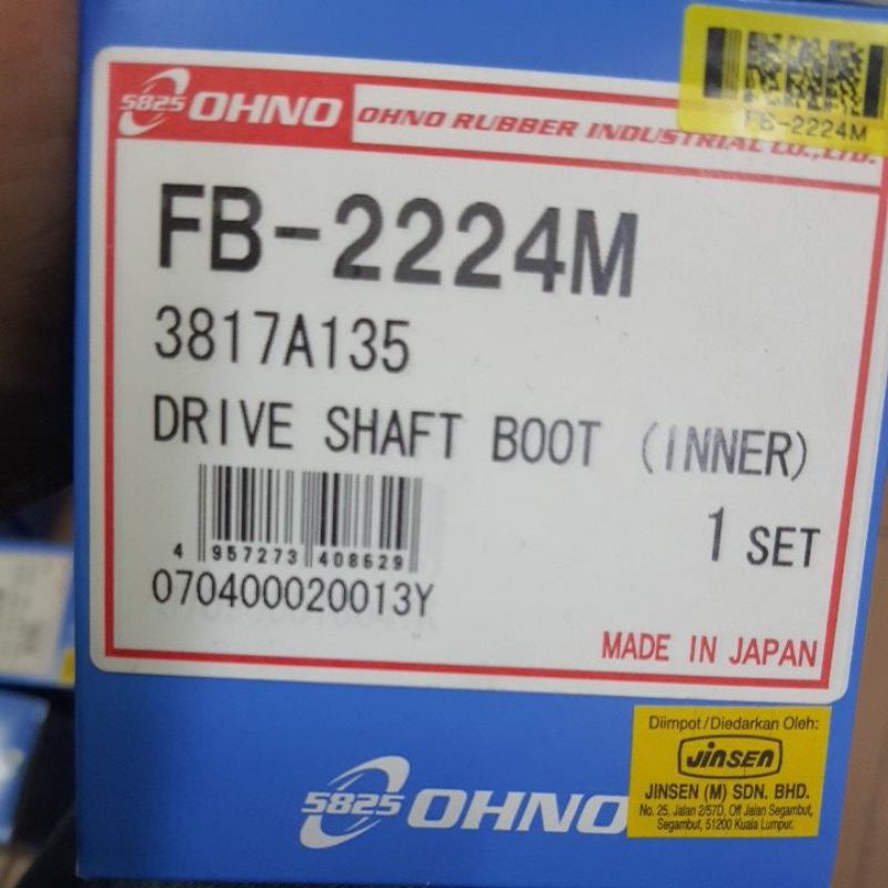 PROTON INSPIRA CY4 DRIVE SHAFT BOOT INNER&OUTER OHNO BRAND JAPAN