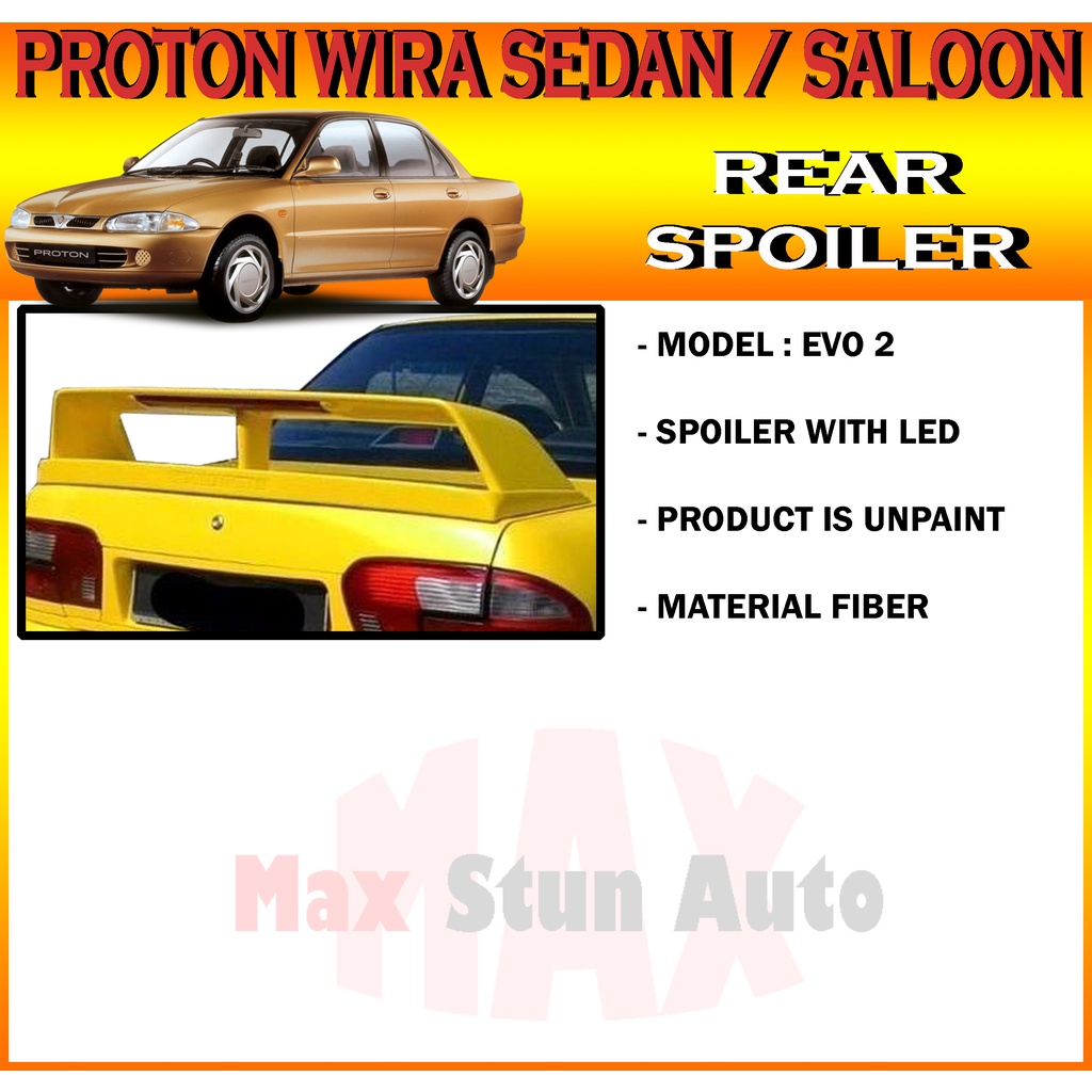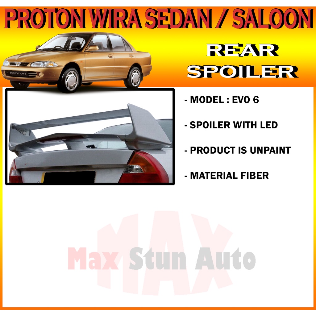 PROTON WIRA SEDAN SALOON REAR TRUNK SPOILER (FIBER SPOILER FOR WIRA SALOON SEDAN) EVO STYLE,GSR,MIVEC,SUBARU,EVOX