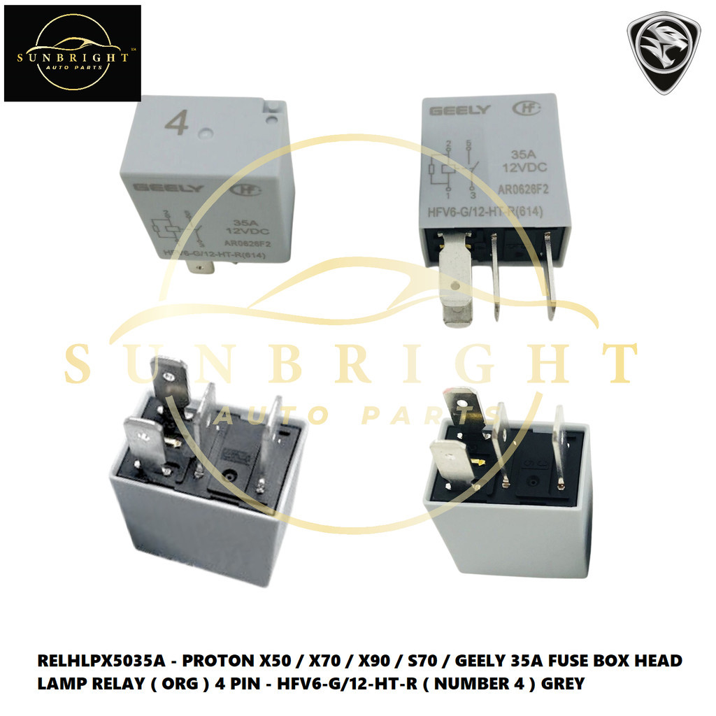 PROTON X50 / X70 / X90 / S70 / GEELY 35A FUSE BOX HEAD LAMP RELAY ( ORG ) 4 PIN - HFV6-G/12-HT-R ( NUMBER 4 ) GREY