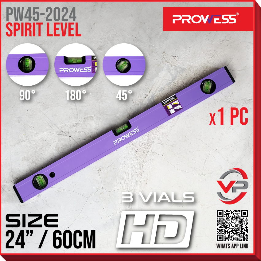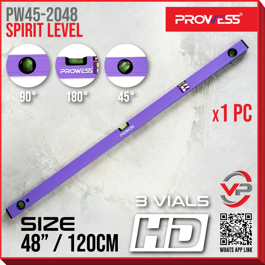 PROWESS SPIRIT LEVEL SIZE 12"/30CM 18"/45CM 24"/60CM 36"/90CM 48"/120CM WATER LEVEL 45/90/180 DEGREE 3 VIALS MURAH