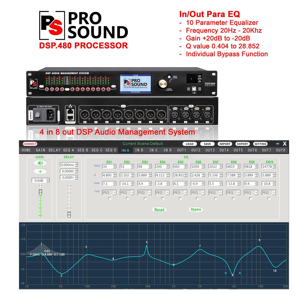 PS Pro Sound DSP-480 AUDIO PROCESSOR (DSP Processor) 4 in 8 out audio management sound processor