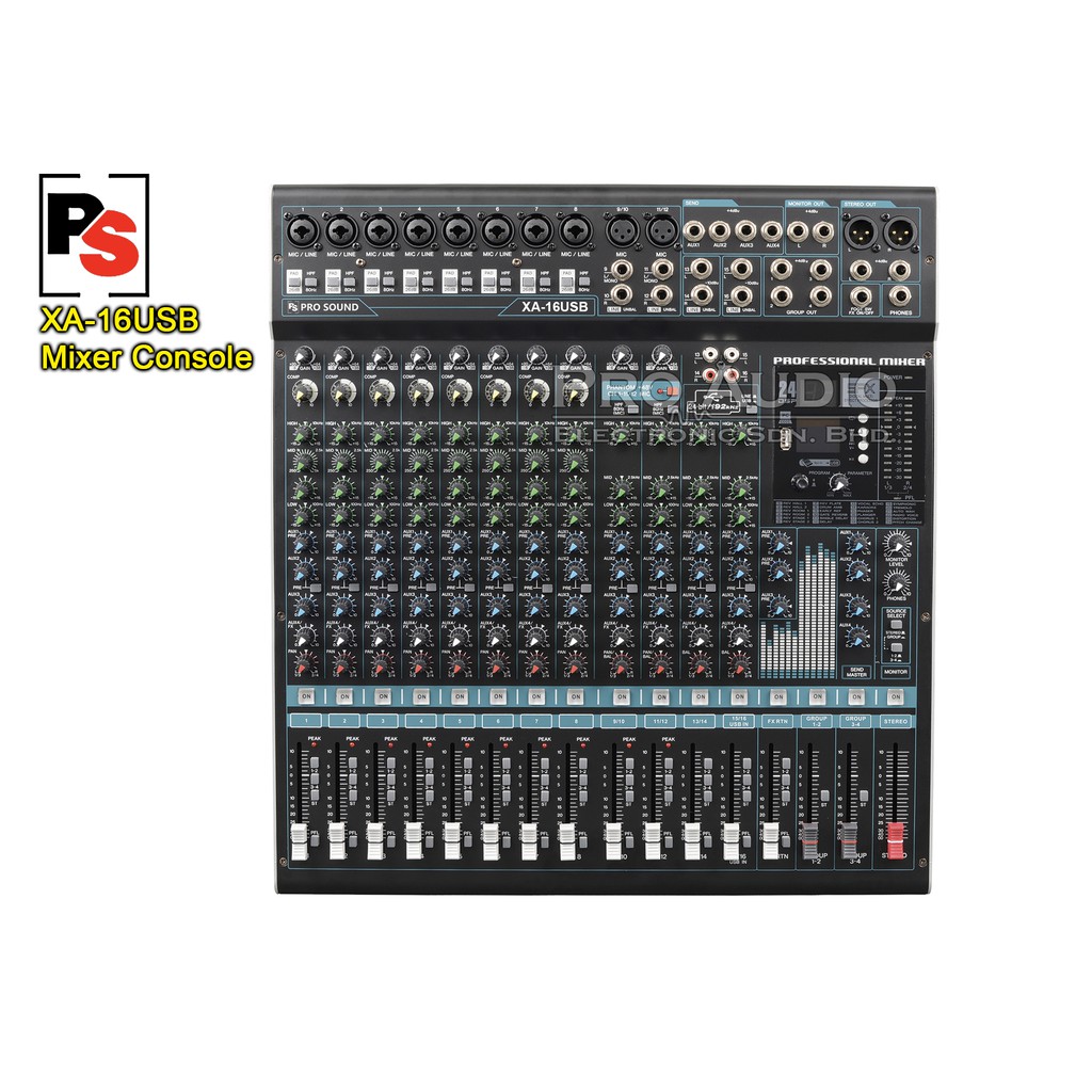 PS Pro Sound XA-16USB 16-Input Mixer with 24DSP Echo Effects, 4 Aux out, 4 Group out, USB Bluetooth playback 16ch Mixer