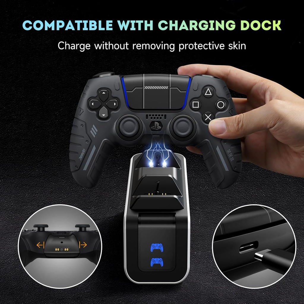 PS5 Controller Skin, Anti-Slip Soft Silicone Protective Cover Case for PS5 Wireless Controller with Enhanced Grip Design and 2 Themed Stickers,Black