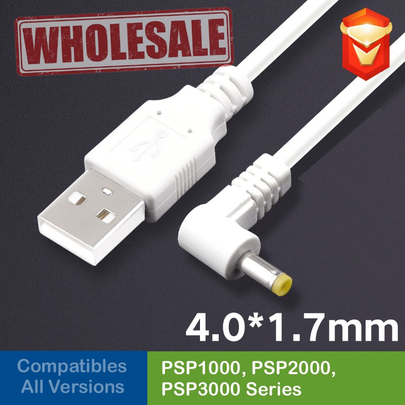 PSP 1000 / e1008 / 2000 / 3000 4.0x1.7mm Usb Cable Charger Cord Supply 5V Jack Right Angle Elbow L shape charging Cable
