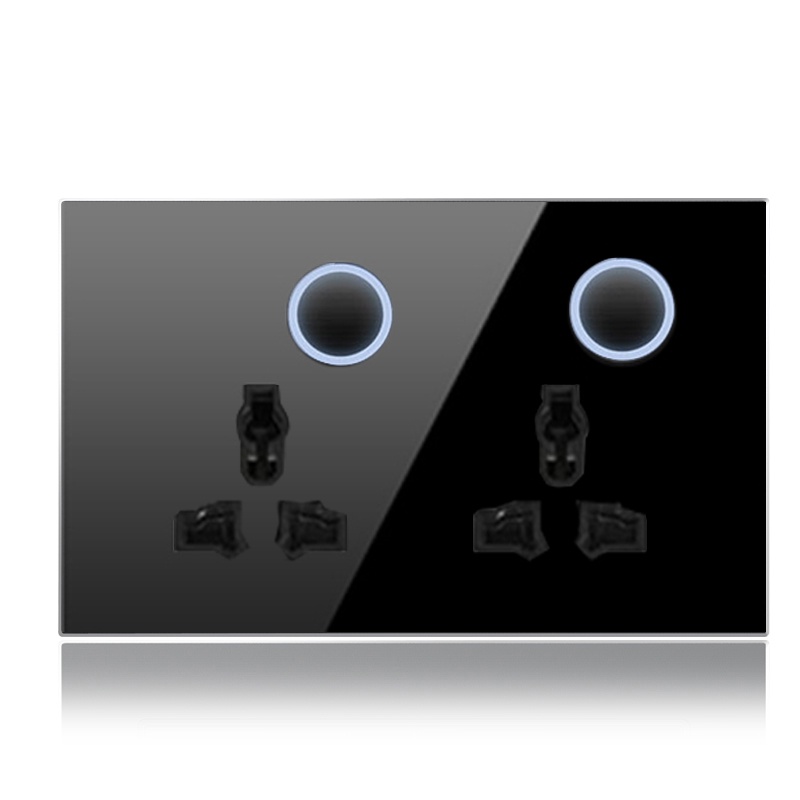 PSSRISE 13A Wall Black Socket Universal 3 Hole Socket Dimmer Electric Light Wall Switch Glass Panel LED Indicator-G12