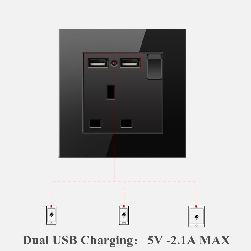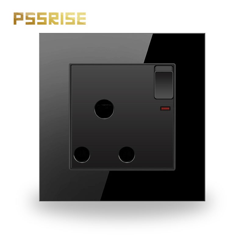PSSRISE Black Wall Switch Socket 13A/15A/Autogate/Light Controller/Rotary Plug Switch Soket with Usb Black Tempered Glass with LED Indicator 2 Year Warranty CE International Certification-G11