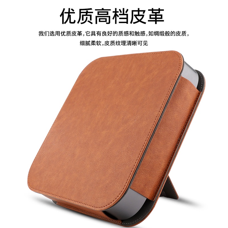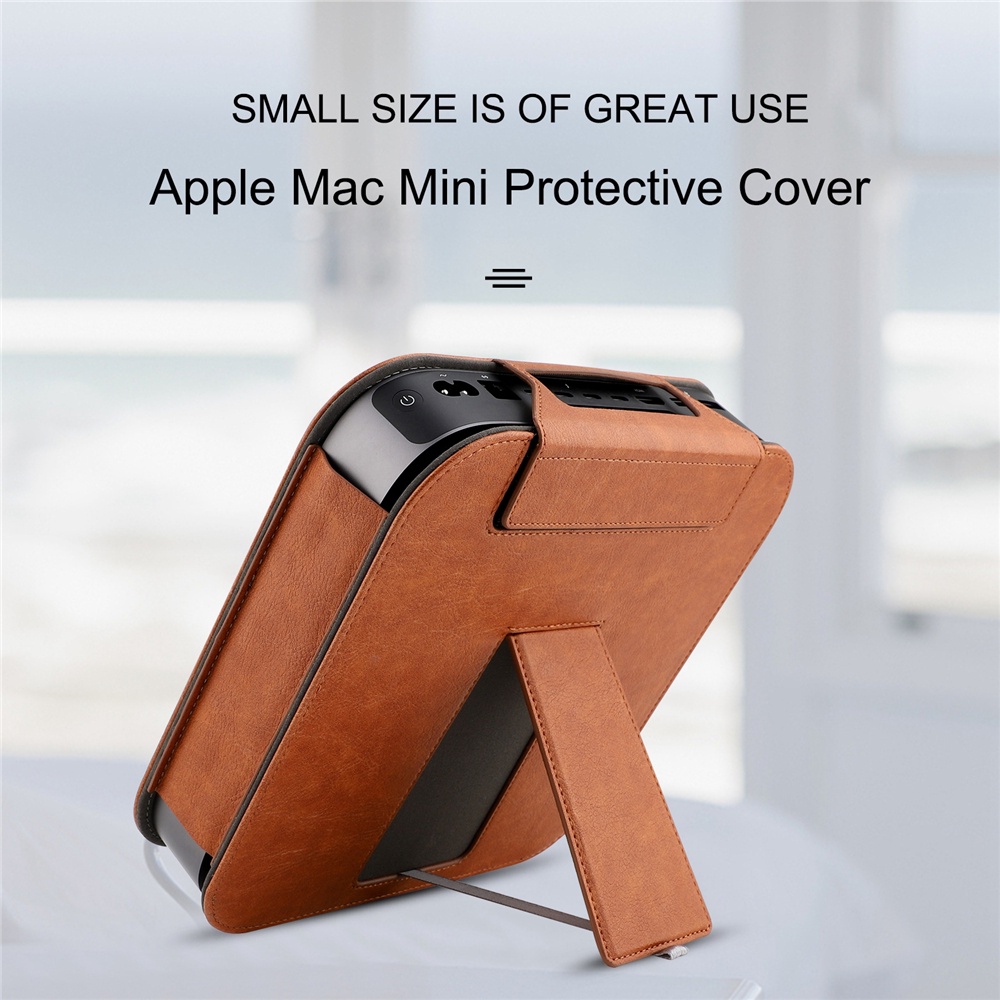 PU Leather Bracket Stand Case Cover for 2020 M1 Mac Mini Desktop 2018 Full Protection Pouch Sleeve Anti-skid Shockproof
