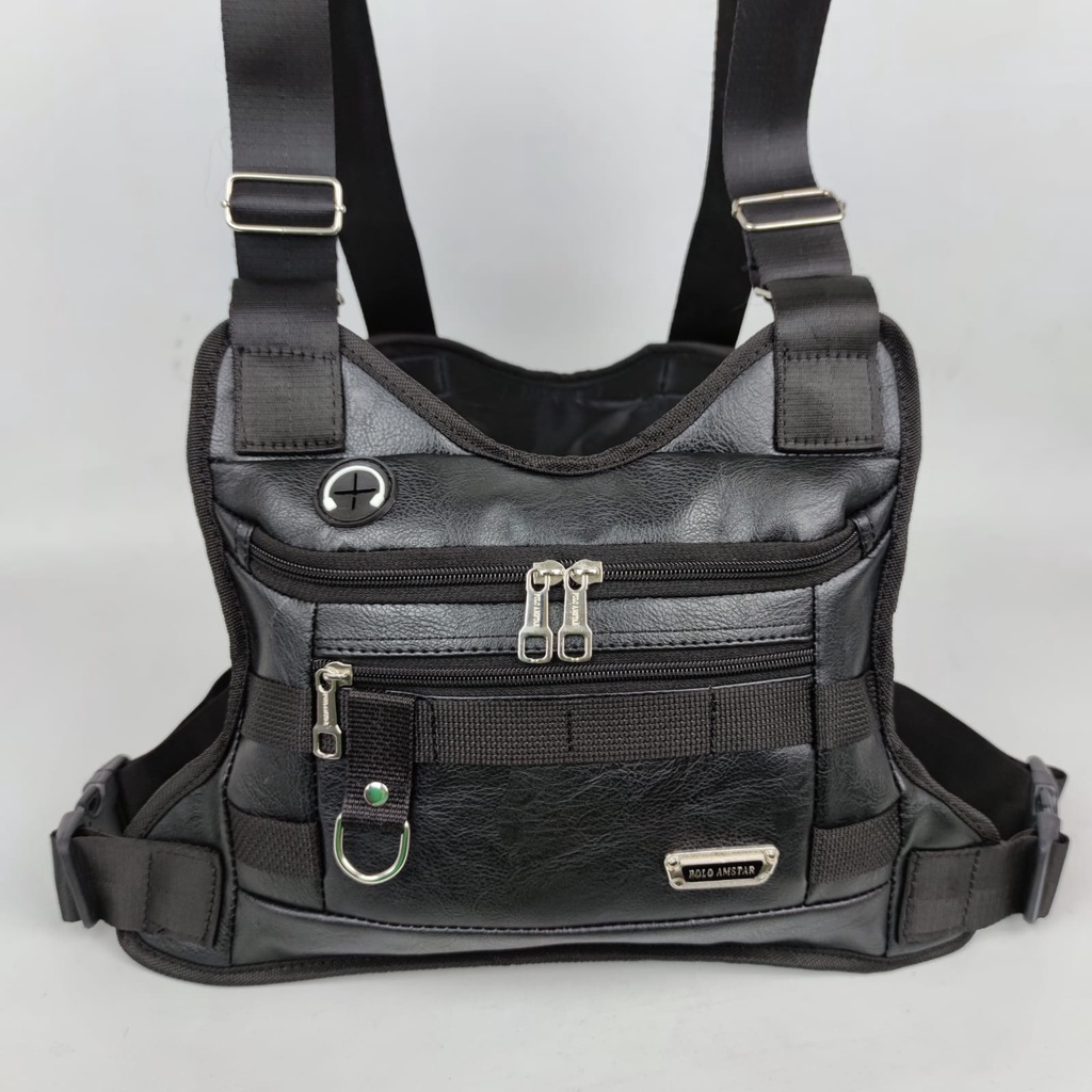 PU Leather Chest Bag Water Resistant Tactical Chest Rig Outdoor Chest Bag