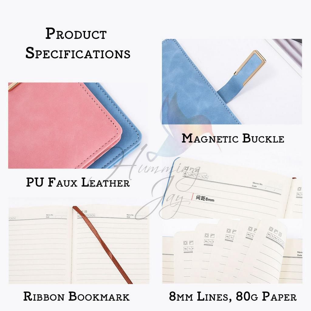 PU Leather Diary Journal Book with Buckle A5 200 Pages 9 Color Elegant Planner Notebook for 2021