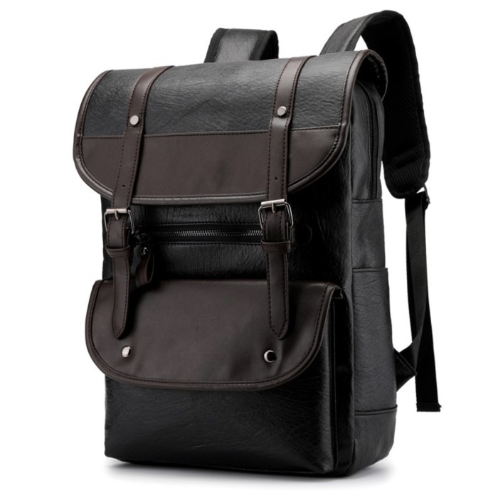 PU leather backpack PRIA PRIA backpack import College Work HIGH QUALITY T90 - Hitam.