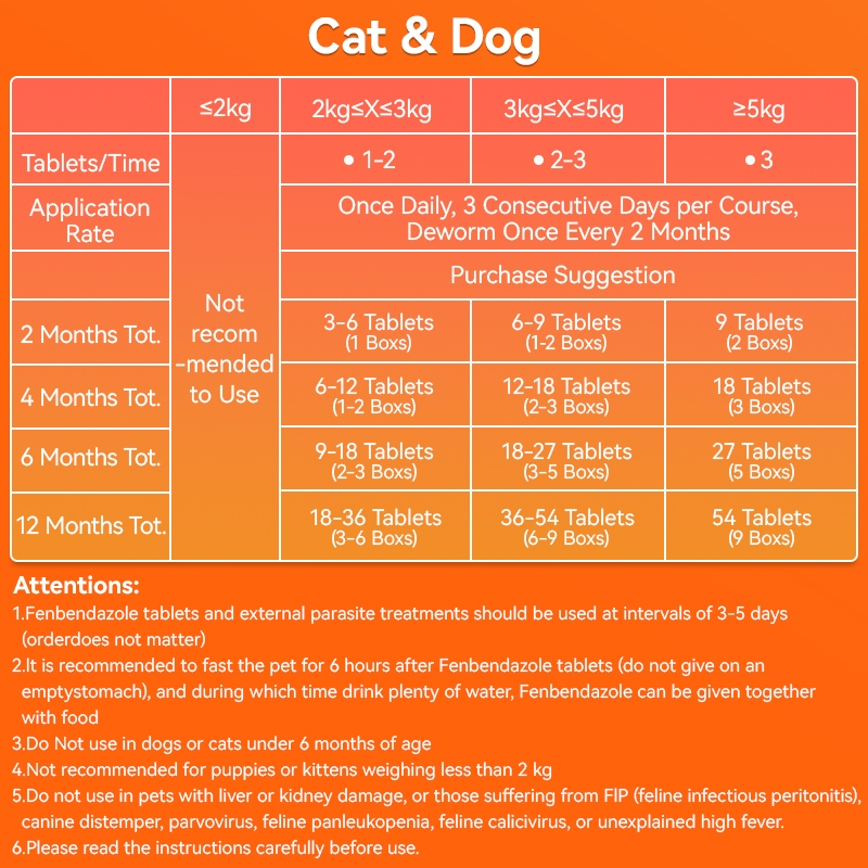 PUAINTA 95% Deworming Rate Pet Dewormer Tablet Anti Hookworm Whipworm Roundworm Nematode Deworming Tablet for Cat Dog Pet Healthcare 6 pcs / Box