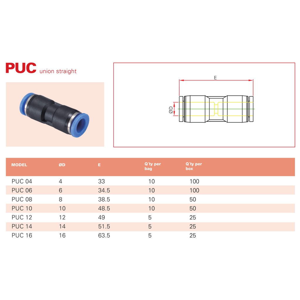 PUC UNION STRAIGHT One Touch Fitting-METRIC SYSTEM