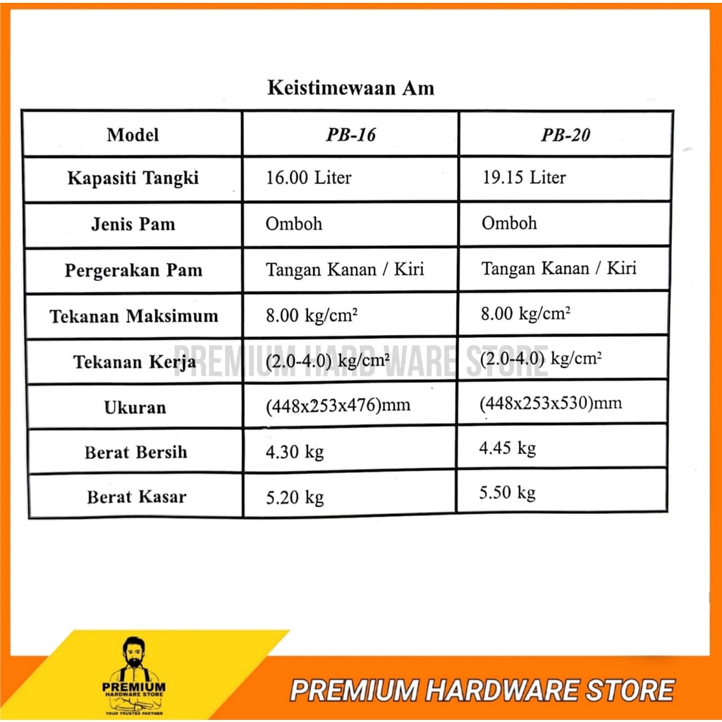 PUMP PB KNAPSACK SPRAYER 16L / PB16 / AGRICULTURAL MANUAL PUMP / CHEMICAL PRESSURE SPRAY GARDEN / PAM RACUN MANUAL