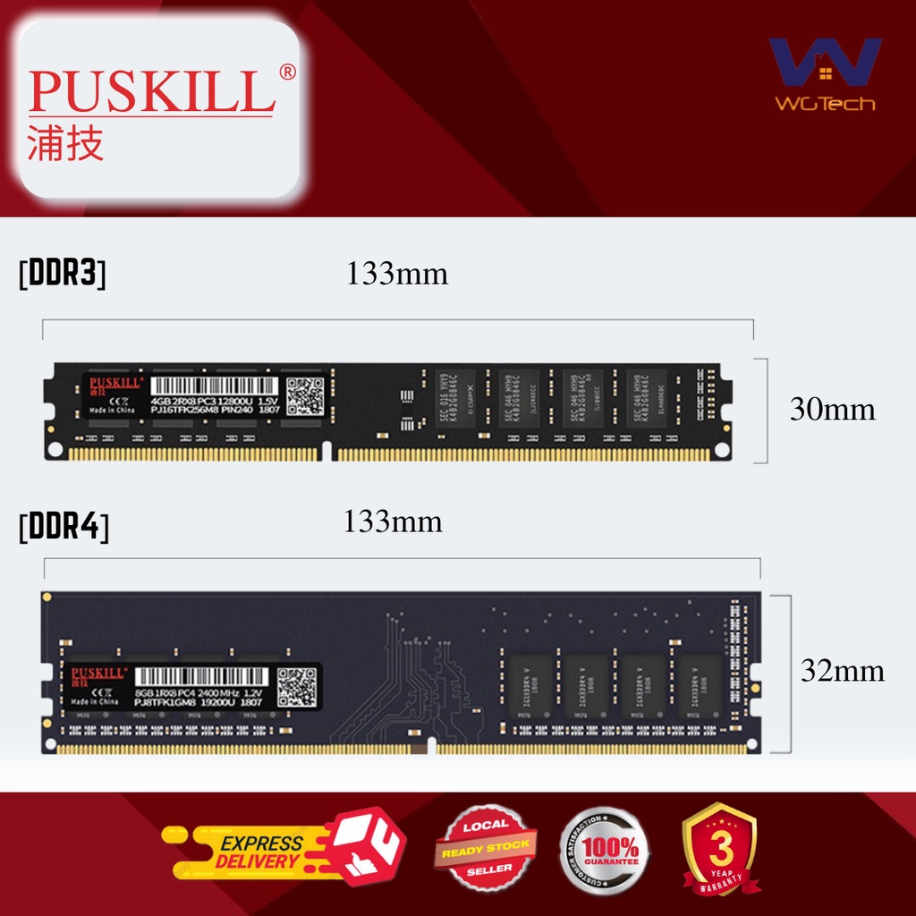 PUSKILL [4GB/8GB/16GB] DDR3 - 1333mhz/1600mhz | DDR4 - 2133/2400/2666/3200 U-DIMM Desktop PC Single Kit RAM Memory