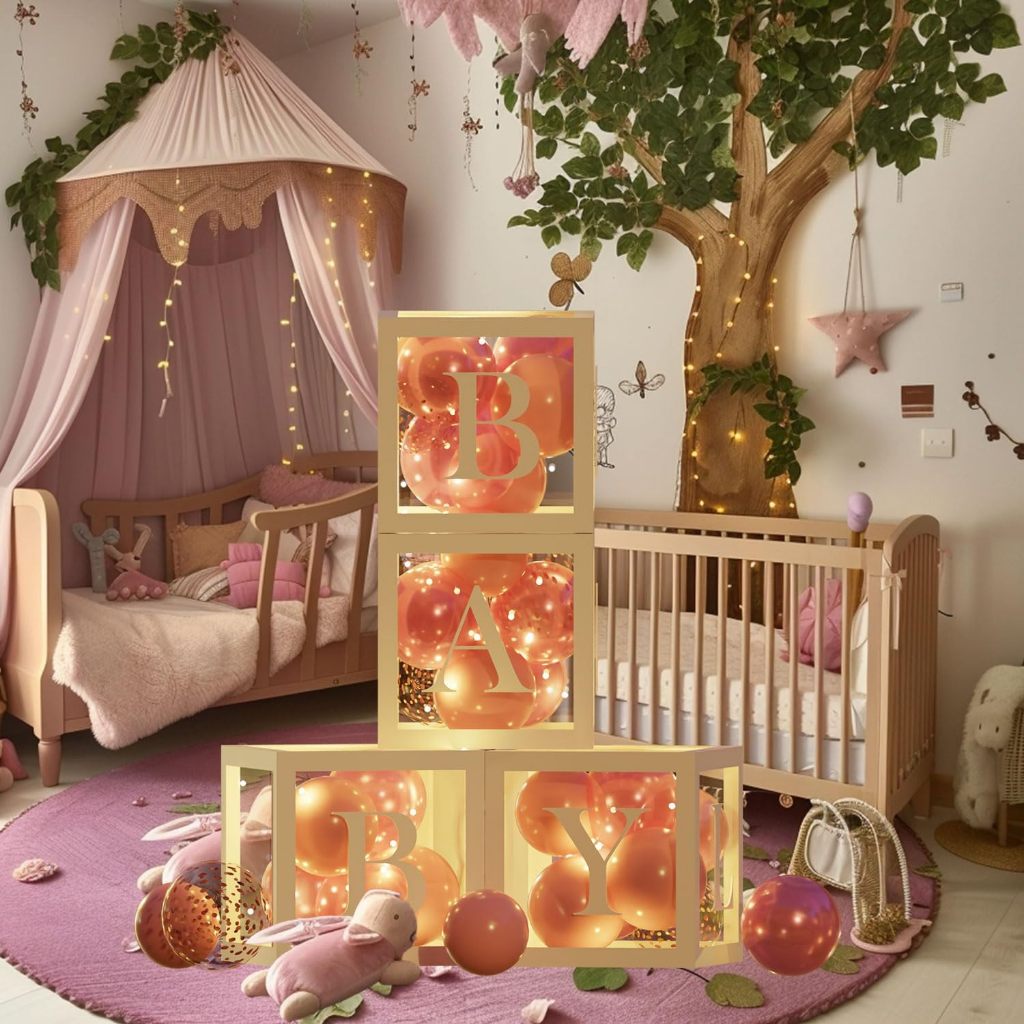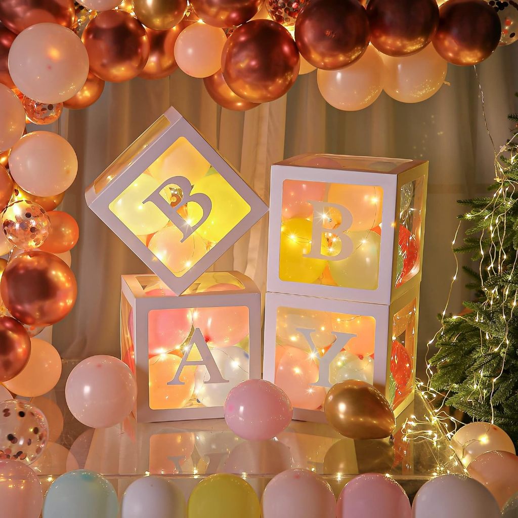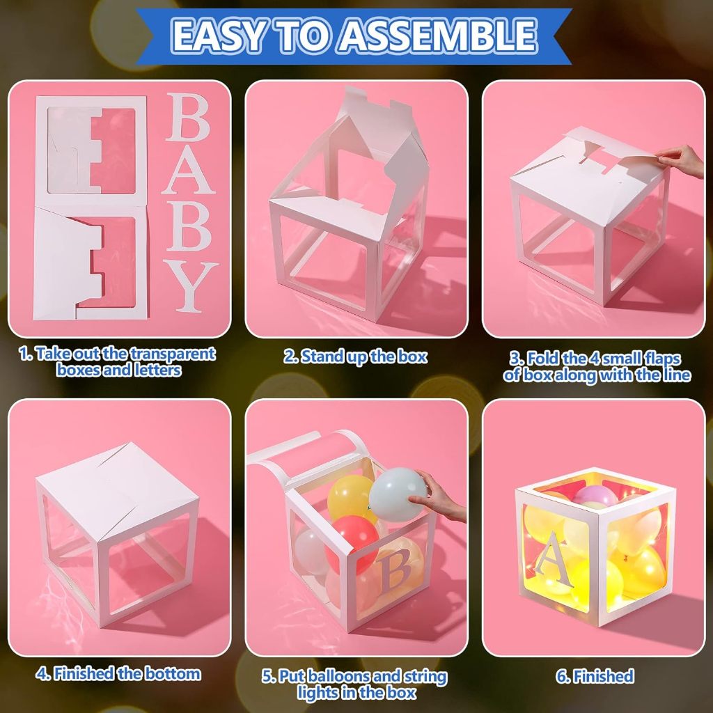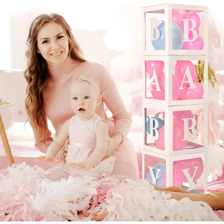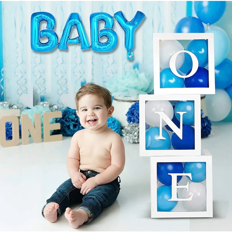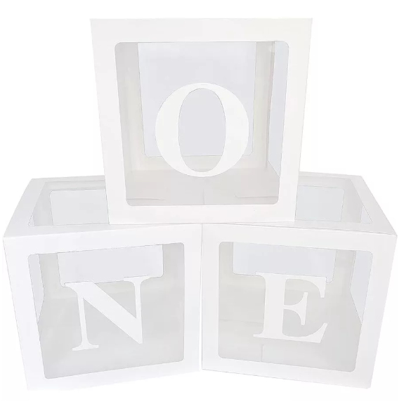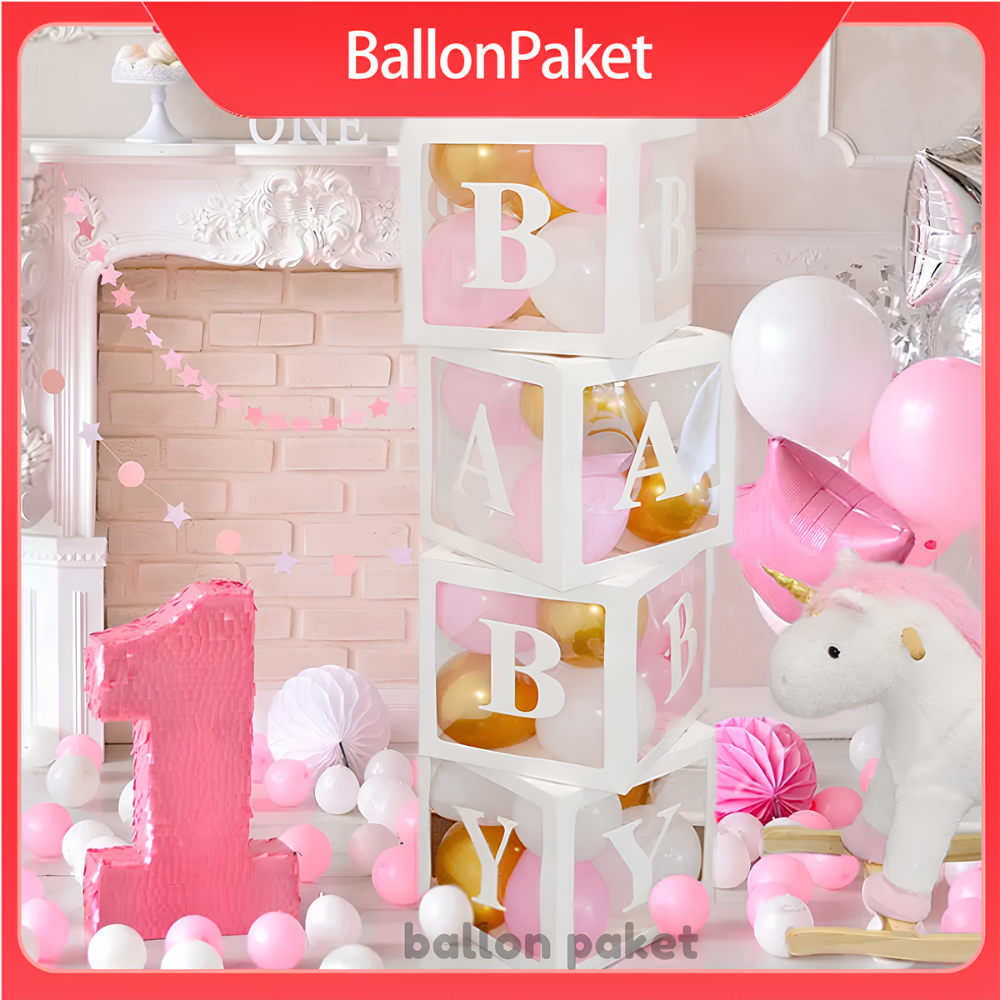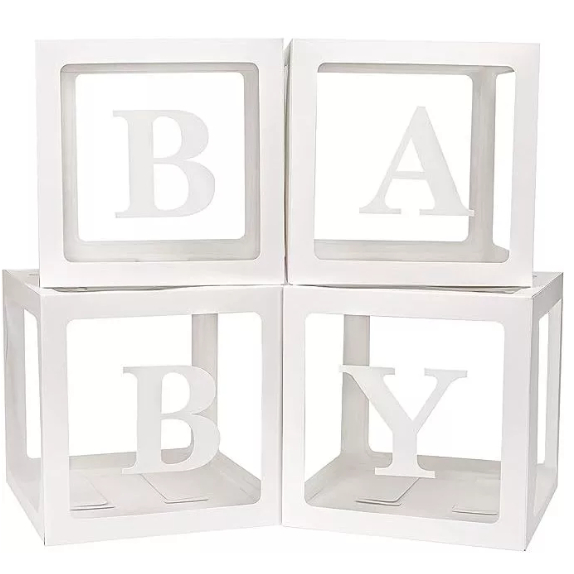 4pcs White Box Transparent Balloon Box Decorative Balloon Box Transparent Letter/ Box BABY ONE