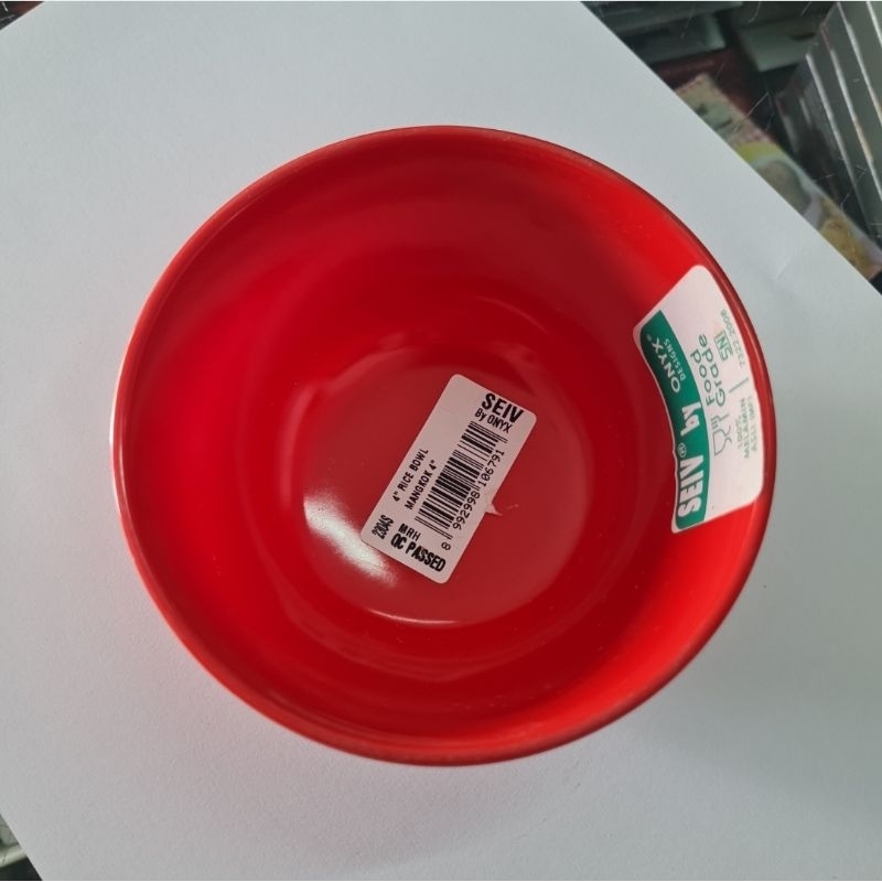 MERAH 2304S Rice Bowl 4" Melamine Bowl, Seiv by Onyx, Red and White