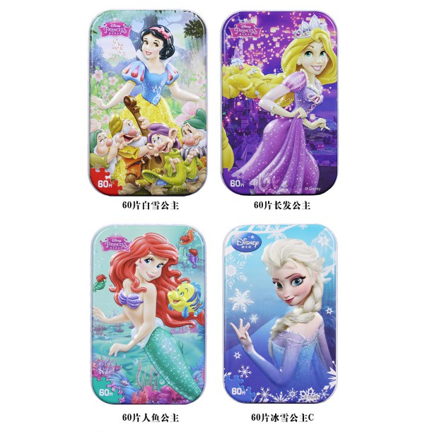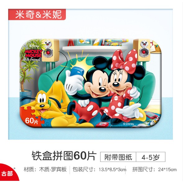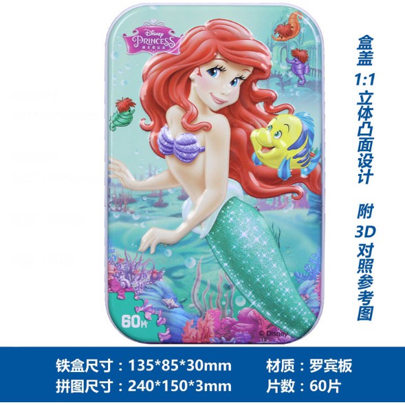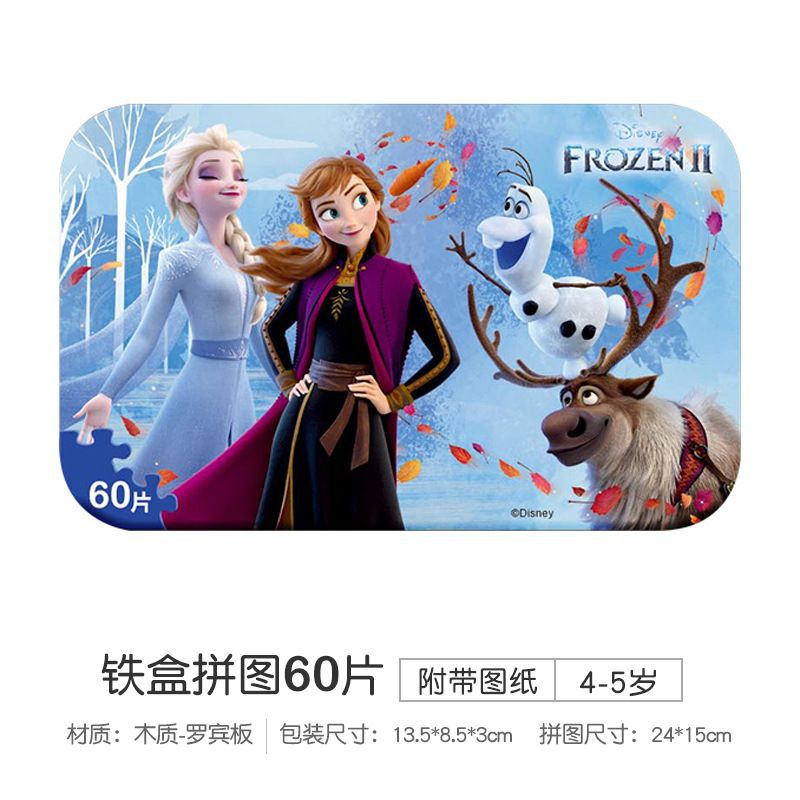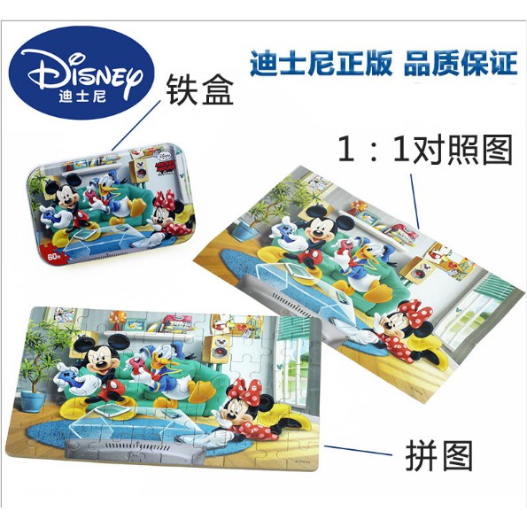 PUZZLE TOYS 60pcs 3D Disney cartoon mainan wooden jigsaw puzzles toy with iron box kids children gift souvenir.