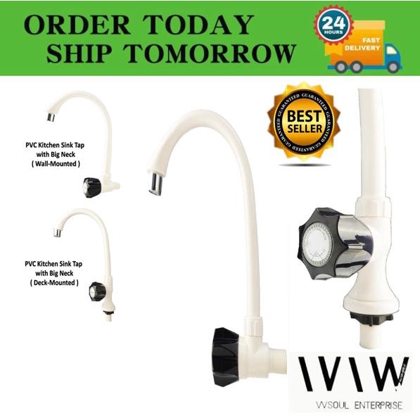 PVC 1/2" Wall-Mounted Kitchen White sink tap Plastic basin faucet with Big Neck ( White ) Kepala Paip Plastik