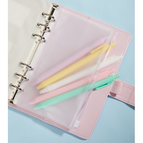PVC A5 Binder Pockets Clear Zipper Lock Folders For 6-Ring PU Macaron Notebook Binder Files Reports Binder