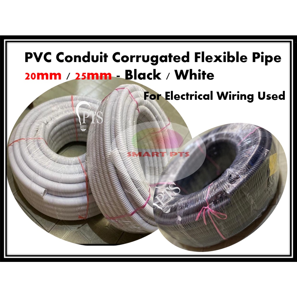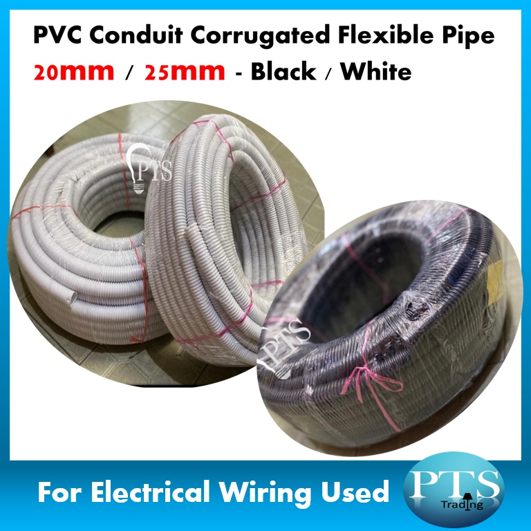 PVC Conduit Corrugated Flexible Pipe 20mm / 25mm - Black / White PVC pipe lembut wiring