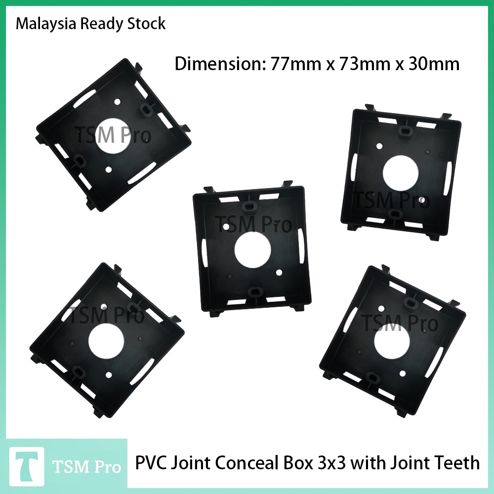 PVC Joint Conceal Box 3x3 with Joint Teeth / Conceal Type / Black Single Switch Base