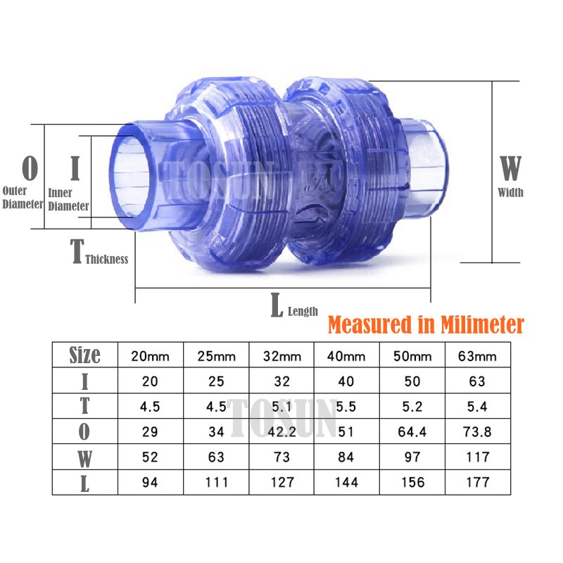 PVC One Way Check Valve Transparent Union Non-Return Valve PVC Pipe Fittings Plumbing System Parts Water Tube Connector