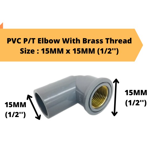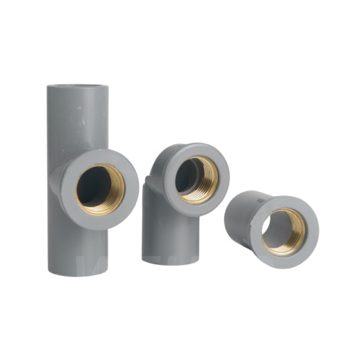 PVC P/T Socket, Tee, Elbow PVC Pipe Fitting With Brass Thread 15mm x 15mm or 1/2'' x 1/2''