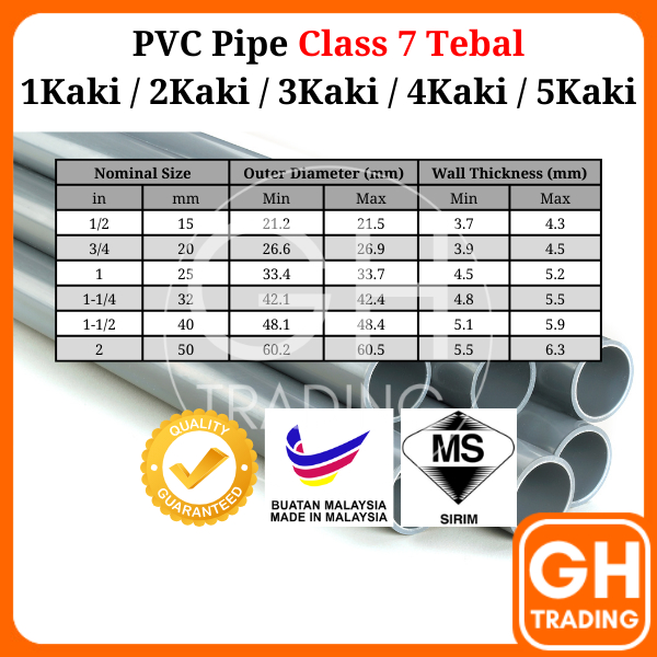 PVC Pipe Big Batang Paip PVC Hitam Paip Air Pvc 25mm 1 inci Class 7 Sirim Tebal Heavy Duty