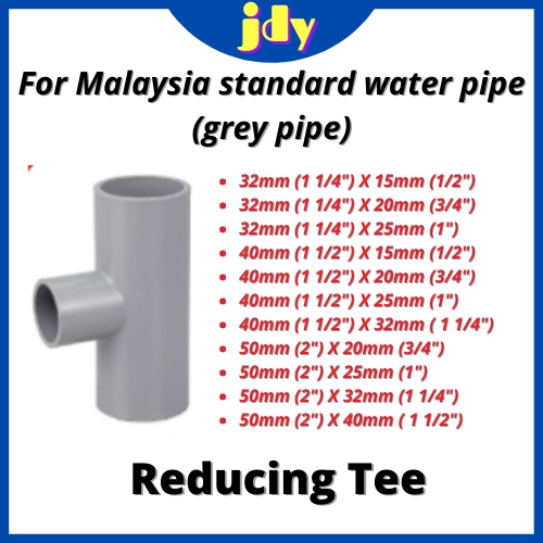 PVC Pipe Fitting Paip PVC Connector Reducing Socket Reducing Tee 32mm 40mm 50mm