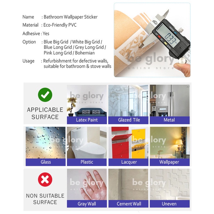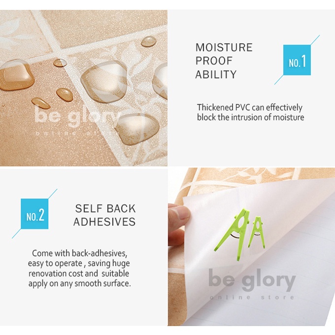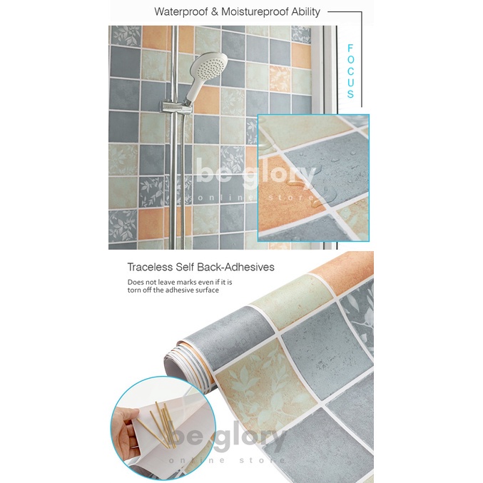 PVC Wallpaper Sticker 60cm x 1m Home Decor Bathroom Kitchen Self adhesive Waterproof Kertas Dinding