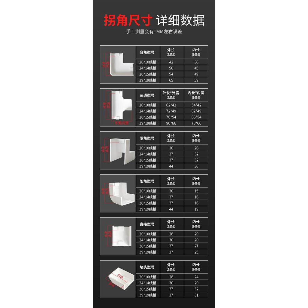 PVC trunking accessories flat corner tee internal angle elbow external angle elbow corner plug corner turning