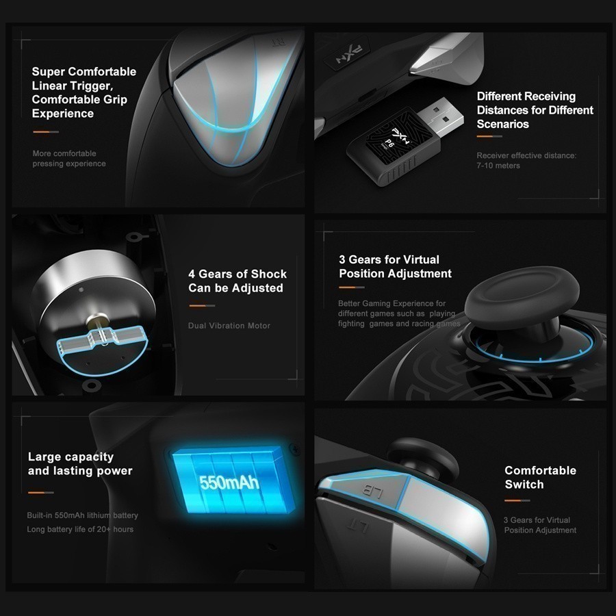 PXN P6 Pro Wireless Bluetooth Controller Gamepad Joystick with Built in Dual Vibration Motor (PC, IOS, Android)