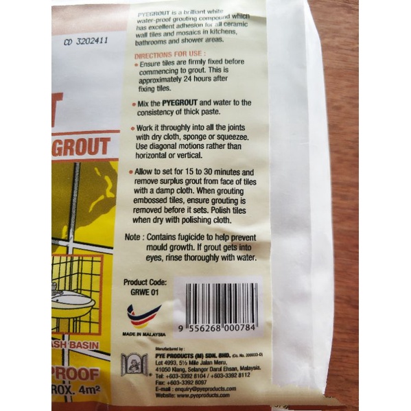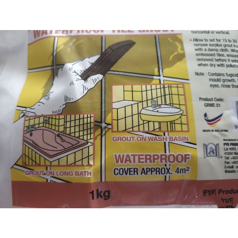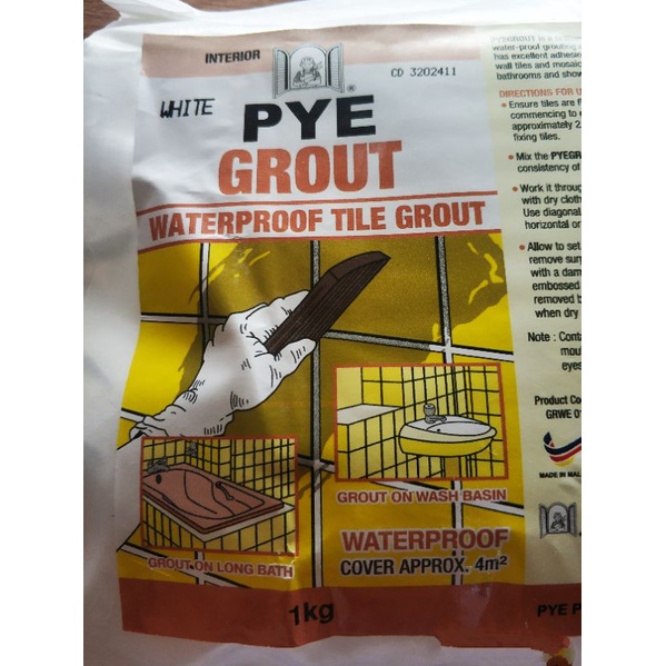 PYE Waterproof Tile Grout 1kg White / Jubin Cement