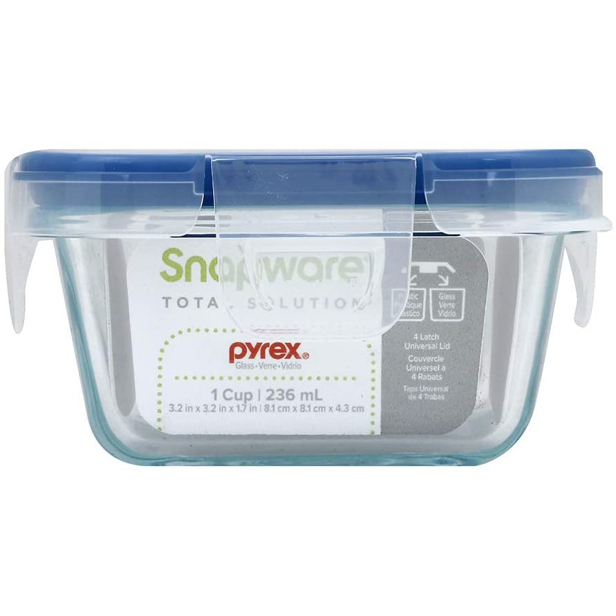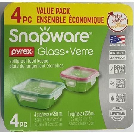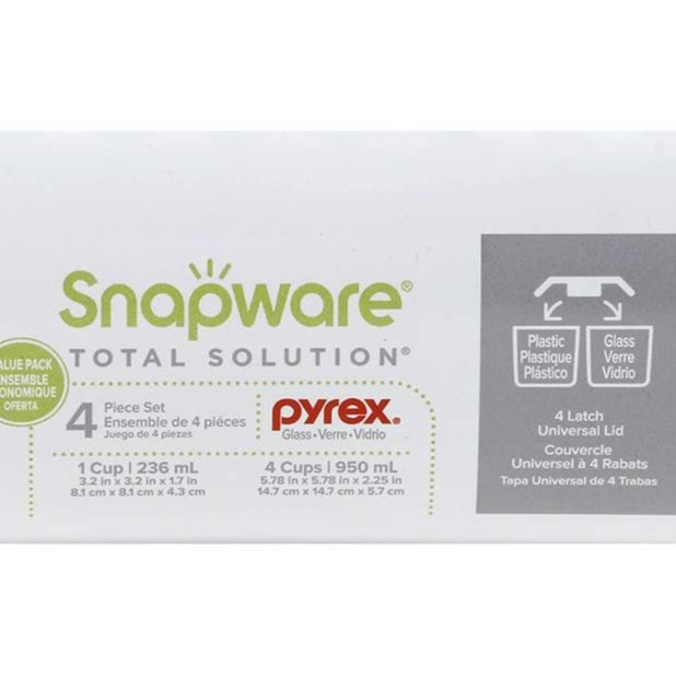 PYREX® Snapware® 1109350 Total Solution 4Pc 4 Cups/1Cup@950ml/236ml Square Glass Food Storage Set