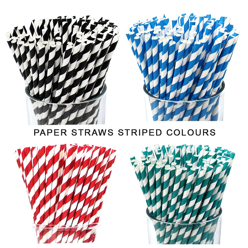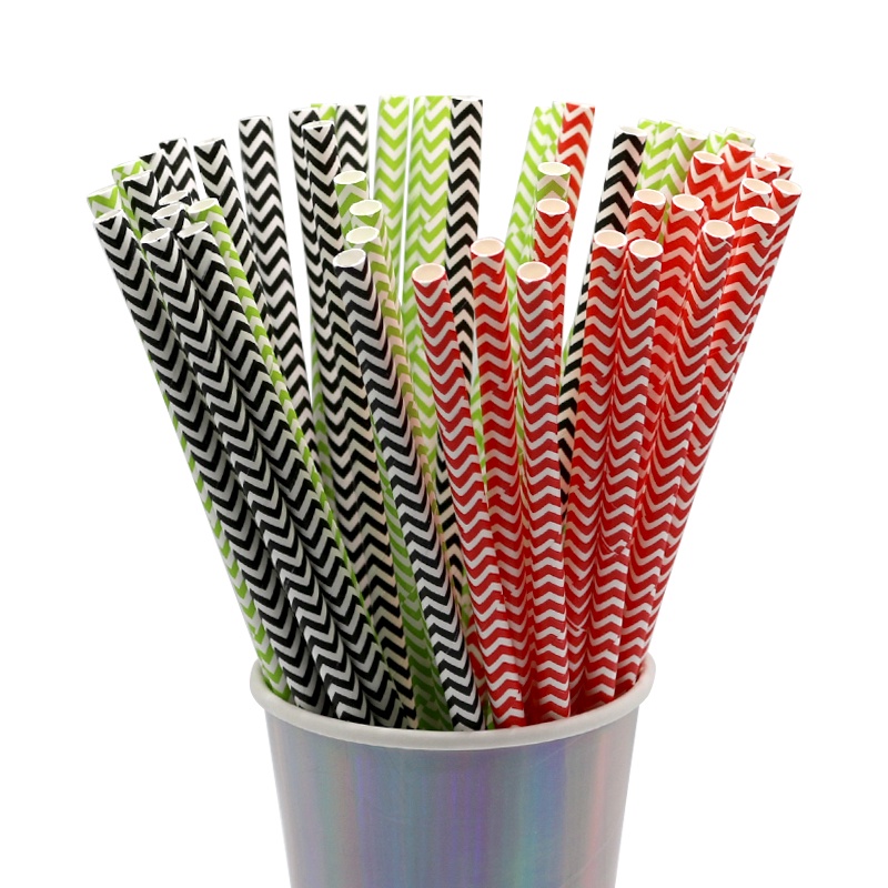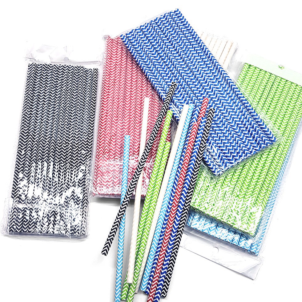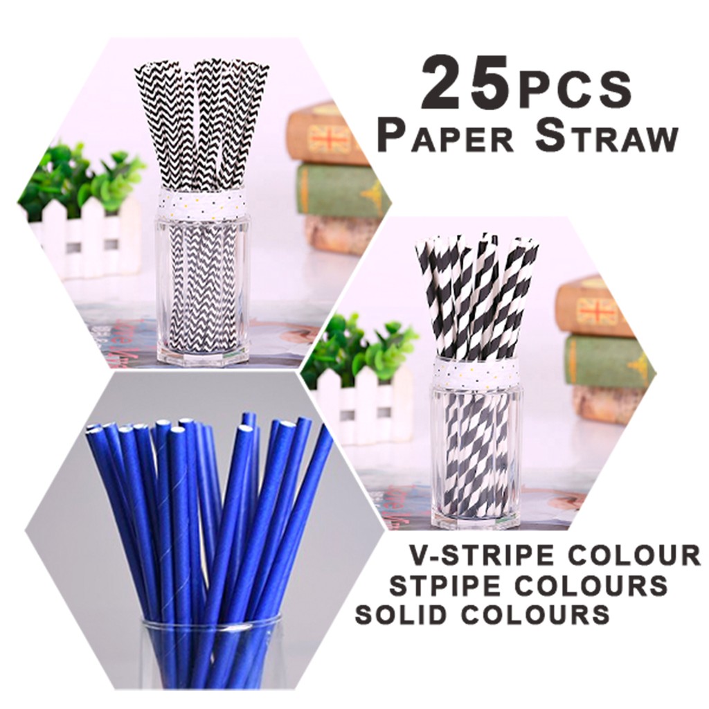 25pcs Paper Straws (V Striped/Solid/Striped Line) - 6mm x 197mm / Party Straws / 100% Biodegradable + Food Grade