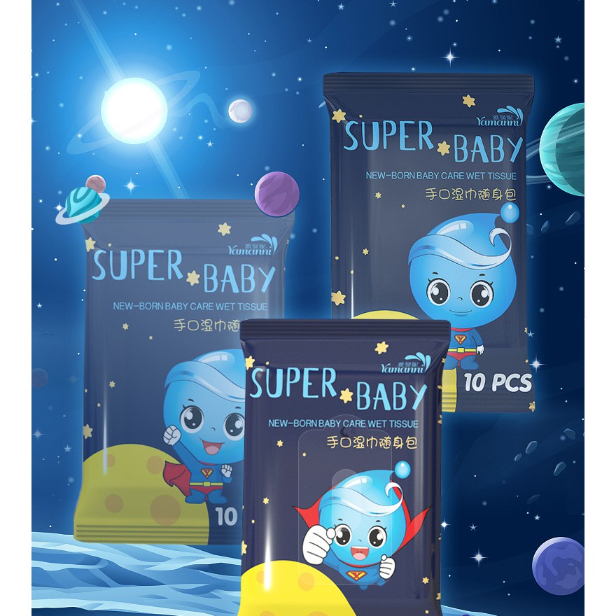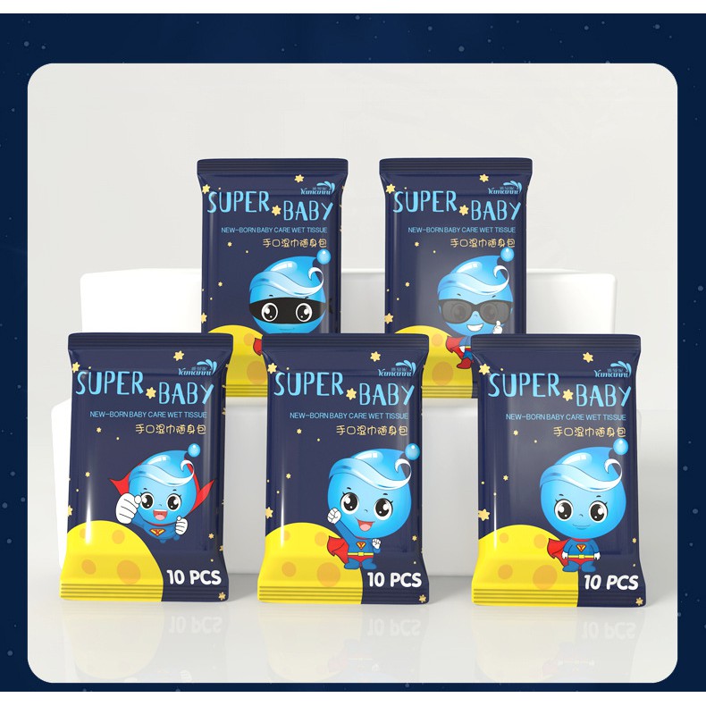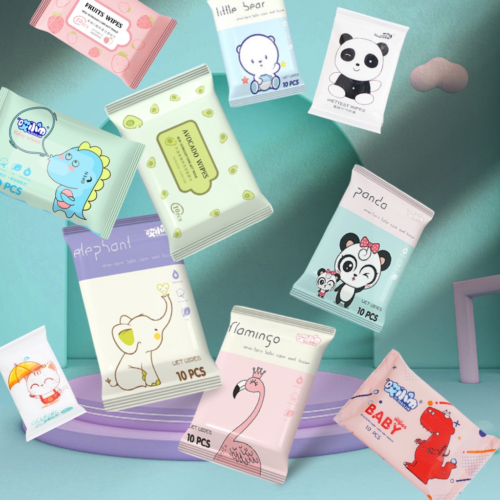 Pack Wet Tissue 10 Sheets Small Pack Doorgift Baby Wipes Tissue Baby Tisu Basah Wet Tissue with Alcohol Free