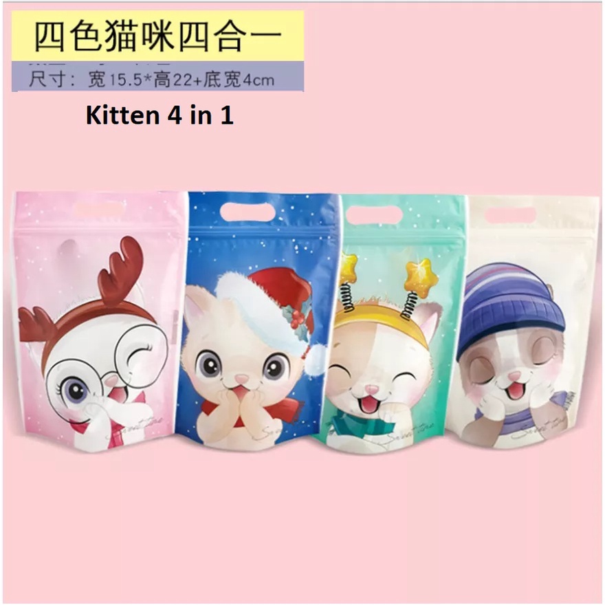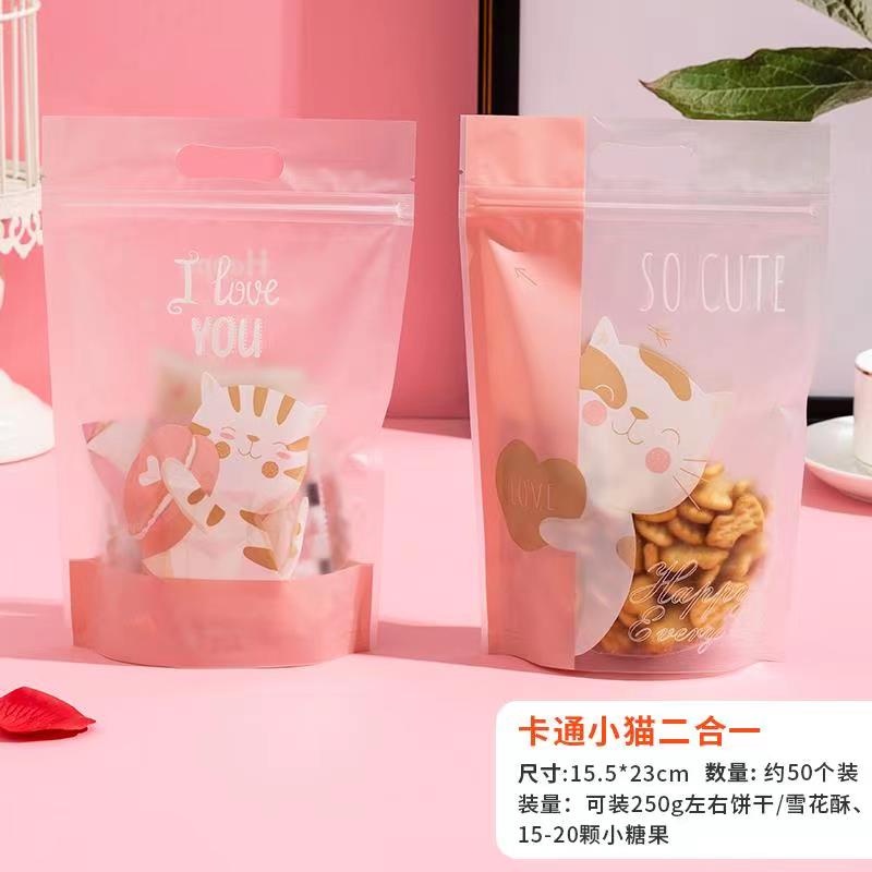 Packaging Bag (+-50 pcs)Stand Up Zipper Plastic Package Bag for Nuts Cookies Biscuit Cartoon Cat Ziplock Press Seal Bag