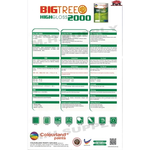 Page 2 Colourland Paints 5Litres Big Tree High Gloss ( Metal & Wood ) / Cat Kilat Untuk Kayu & Besi Cat Minyak 5Litres