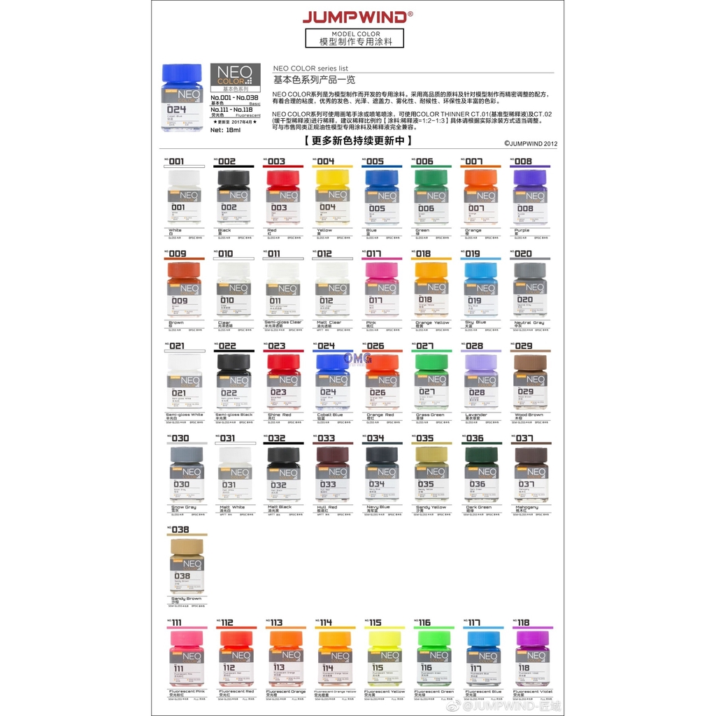 Paint Jumpwind JW021-JW042 Basic Neo Color Primary Colour Gloss Semi Gloss Matt Jump Wind Gundam Color Airbrush OMG